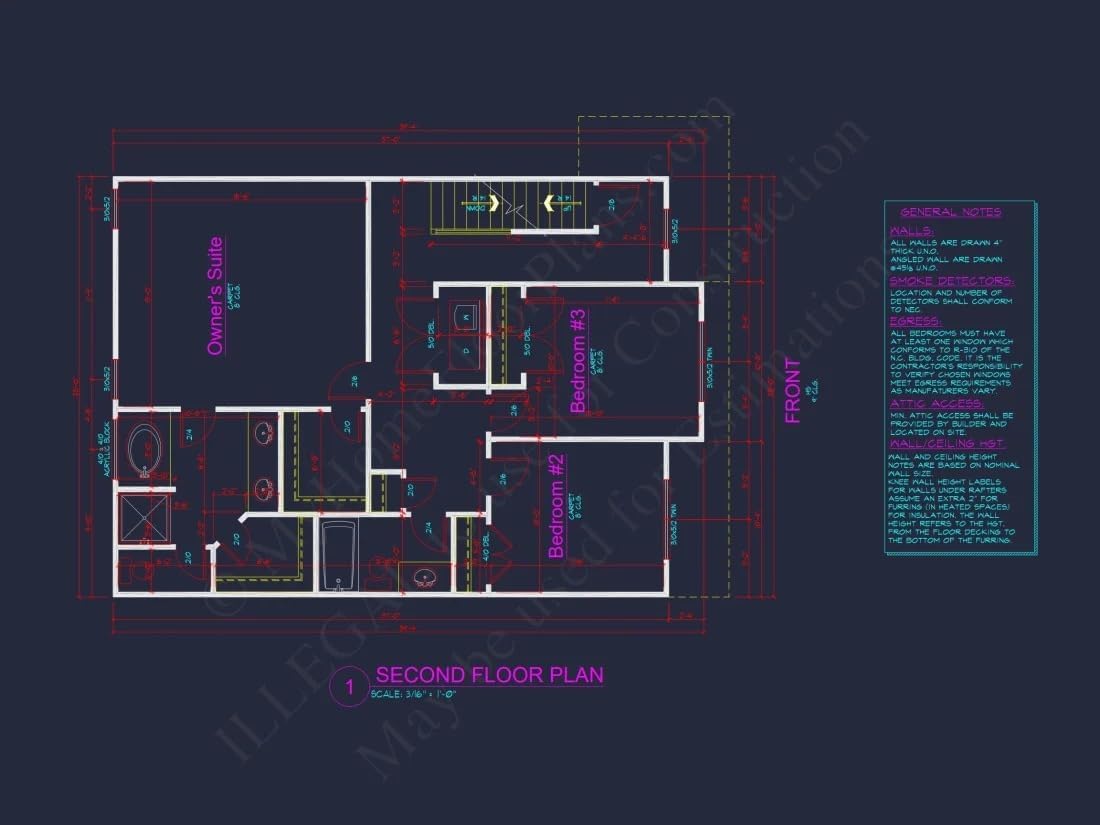 Width: 32′-0″Depth: 43′-0″Htd SF: 1,782Unhtd SF: 1,009Modern Suburban Home Plan with 3 Bedrooms and Efficient 2-Story DesignExplore this sleek and functional 1,782 sq. ft. suburban house plan with 3 bedrooms, 3 bathrooms, and CAD blueprints—perfect for narrow lots under 40 feet.This modern suburban house plan offers a perfect mix of comfort and functionality. Designed for contemporary living, it delivers timeless charm and smart space planning in a compact footprint.Key Features of the Home PlanLiving Areas - Heated & UnheatedHeated area: 1,782 sq. ft. over two stories.Unheated extras: Front and rear porches, 2-car garage, attic storage space.Bedrooms & Bathrooms3 comfortable bedrooms, including a spacious second-floor Owner Suite with private bath and large walk-in closet.3 full bathrooms, including a Jack and Jill layout for secondary bedrooms—perfect for families.Interior HighlightsOpen floor plan links the kitchen, dining, and family room for everyday functionality. View open layouts.Fireplace in the family room creates a warm, inviting gathering spot. Browse fireplace plans.Second-floor laundry room offers ultimate convenience.Attic access for additional storage or potential expansion.Garage & Storage DetailsGarage Bays: 2-car garage with front entry access.Garage Type: Attached.Storage: Includes attic, linen closets, and garage space for tools or seasonal storage.Outdoor Living FeaturesCovered front and rear porches offer shaded seating and outdoor enjoyment.Stone accents and shake siding enhance curb appeal with a timeless suburban touch.Architectural Style: Modern SuburbanThis design blends contemporary efficiency with familiar suburban character—perfect for homeowners who value clean lines and compact layouts. Learn more about the modern suburban style or explore inspiration on ArchDaily.Bonus FeaturesUnfinished attic for future flex space or