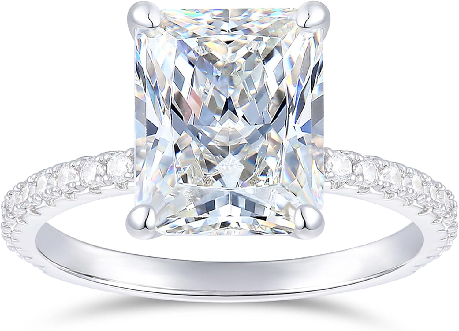Lispark 14K Gold 4 Carat Radiant Moissanite Rings 14K White Gold Radiant Cut Engagement Ring Hidden Halo Moissanite Engagement Ring for Women