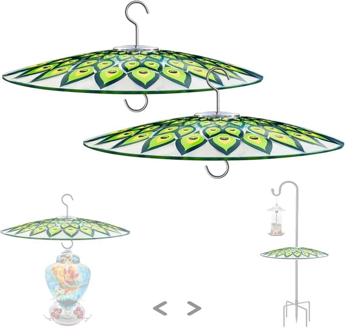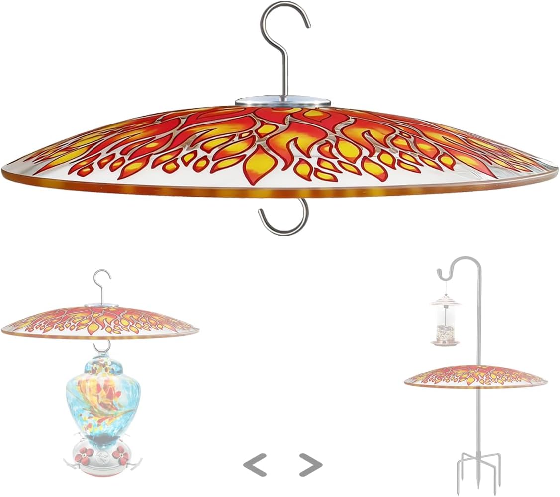 HOLAHOMA glass baffle is dedicatedly designed to have a two-way-use, hanging with S hook or mounting on shepherd pole, with accessories included, fitting most of poles with diameter from 1/2" ~ 1 1/3" ( 1.2cm up to 3.5cm), thus to provide proof for your feeders, keep them dry and clean from rain or snow. 【Typical Features】 Simply dome shape, a very efficient shape as a shield for your bird feeders in all weathers. Larger sized with diameter 13 1/2" (33cm), well matching a wider range of bird feeders. You can choose clear and clean one, that provides a transparent view joyfully, or, the brightly red color, that attracts more birds to your garden. 【Moreover】 Stainless hooks and accessories, no rust, bearing heavy load and durable use in all weather Rubber parts, no worry about collision or scratches to your shepherd hook / pole, nor to the baffle itself 1" Opening hook, easy mounting on or off Sturdy use and always clean in lifetime use. 【Warm Tips】 Accessories are not pre-assembled, screw them tightly on the baffle upon delivery.