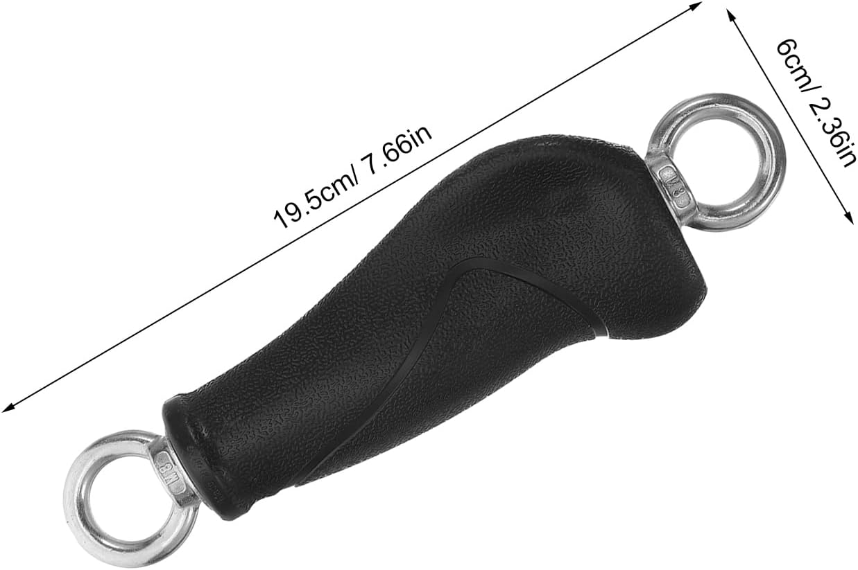 Description These dual-ring handles are essential fitness equipment accessories designed to enhance your workout experience. Crafted with heavy-duty materials, they provide a secure and comfortable grip, making them for various exercises. Whether you're using them with resistance bands or cable machines, these handles ensure stability and control during your workouts. Features -Color:Black -Material:PP, stainless steel, iron -Size:19.50X6.00X3.70cm/7.66X2.36X1.45in -Size:7.00X3.40X0.60cm/2.75X1.34X0.24in - design: the handle design enhances grip stability, ensuring better control and improved workout performance during intense training sessions -Compact short handle: the short handle structure is ideal for compact fitness equipment, saving space while maintaining functionality for various exercises -Durable highstrength material: crafted from highstrength materials, these handles are built to withstand rigorous training, offering durability -Comfortable grip: designed with a comfortable grip to reduce hand strain, allowing for extended workout sessions without discomfort or fatigue -Easy installation: compatible with a wide range of fitness equipment, these handles are easy to install, making it simple to upgrade your home gym setup