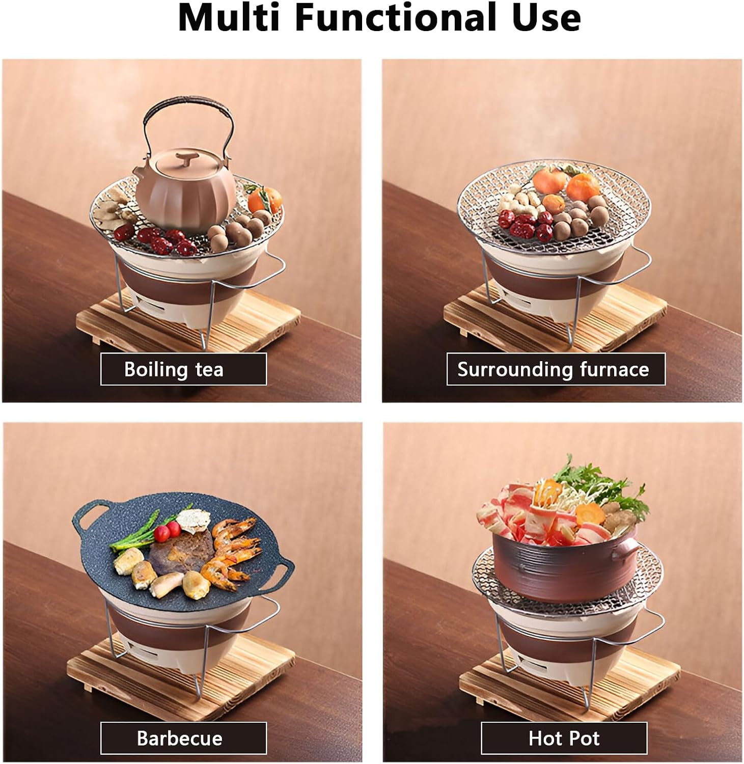 This charcoal grill can burn charcoal. It is very convenient to use and suitable for grilling in different environments. Perfect for outdoor gatherings, this japanese style bbq grill is widely used for various occasions such as brewing tea, heating, burning fire, picnics, camping and of course, cooking delectable barbecue food.Specifications:Material: Stainless Steel, Clay, WoodShape: RoundOccasion: Home, Garden, Yard, Patio, Party, Camping ,Traveling etcPackage Contents:1PC Charcoal GrillNote:1. Due to the different display and lighting effects, the actual color of the product may be slightly different from the color shown in the picture. Thanks!2. Due to manual measurement, a measurement deviation of 1-3cm is allowed.