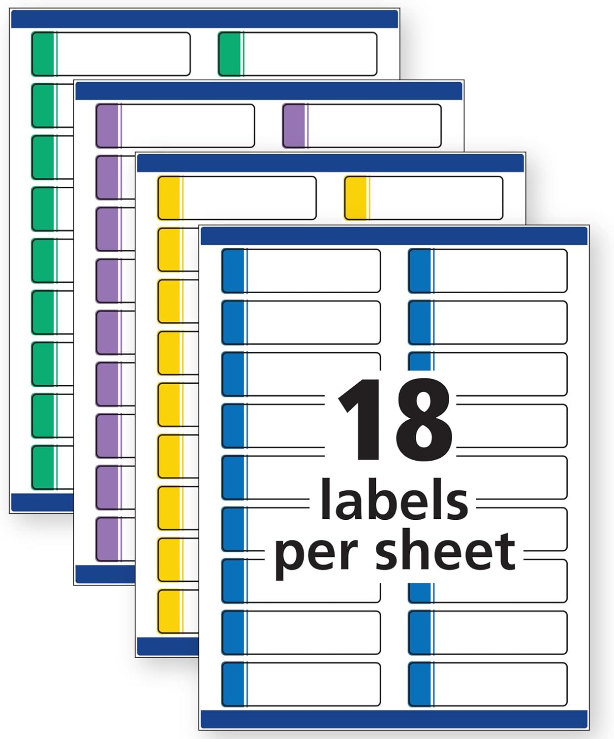 Product Description Less is more, except when you're labeling a file. These extra-large Avery file folder labels provide enough space to include multiple lines of text and larger fonts, graphics and logos right on file folder tabs. The bright, assorted colors are perfect for color coding and quick file identification. With innovative TrueBlock® Technology, markings are completely covered, so your tab folder labels look neat and bright white every time. Lifting and curling are not a problem thanks to the permanent file folder labels self adhesive that guarantees your labels stick securely to smooth surfaces like paper, cardboard, plastic, wood, glass, metal and more. Write directly on labels or print at home in minutes using your laser or inkjet printer. Avoid printer misalignments and paper jams with our proprietary Sure Feed technology that provides a more reliable feed through your printer. Get free templates and designs on the Avery site to customize your labels. This item comes with 25 sheets for a total of 450 assorted colored (blue, green, purple, red, yellow) 2/3" x 3-7/16" Avery file folder labels. From the Manufacturer Maximize text space on your file for quick and easy identification with these extra large filing labels. Ideal for multiple lines of text, larger font sizes, graphics and logos. TrueBlock technology allows the labels to completely cover everything underneath so you can re-use file folders again and again. Labels stick and stay without lift or curl. Sized for 1/3 cut tabs on file folders. Avery offers many easy-to-use templates for Microsoft Word and many other software programs. Compatible with inkjet and laser printers.