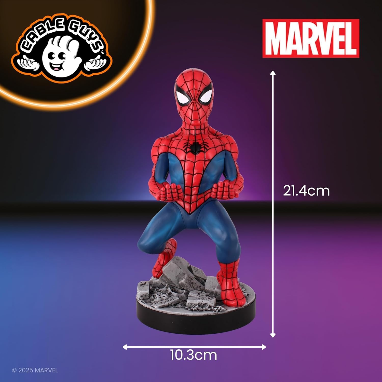 Product Description Cableguys designed on classic Spider-Man, 8" Tall supplied with a 1.2m cable for charging your device. Set Contains: Spider-Man Classic Cable Guy & 2 metre 2 in 1 (Micro USB & USB C) cable to charge devices