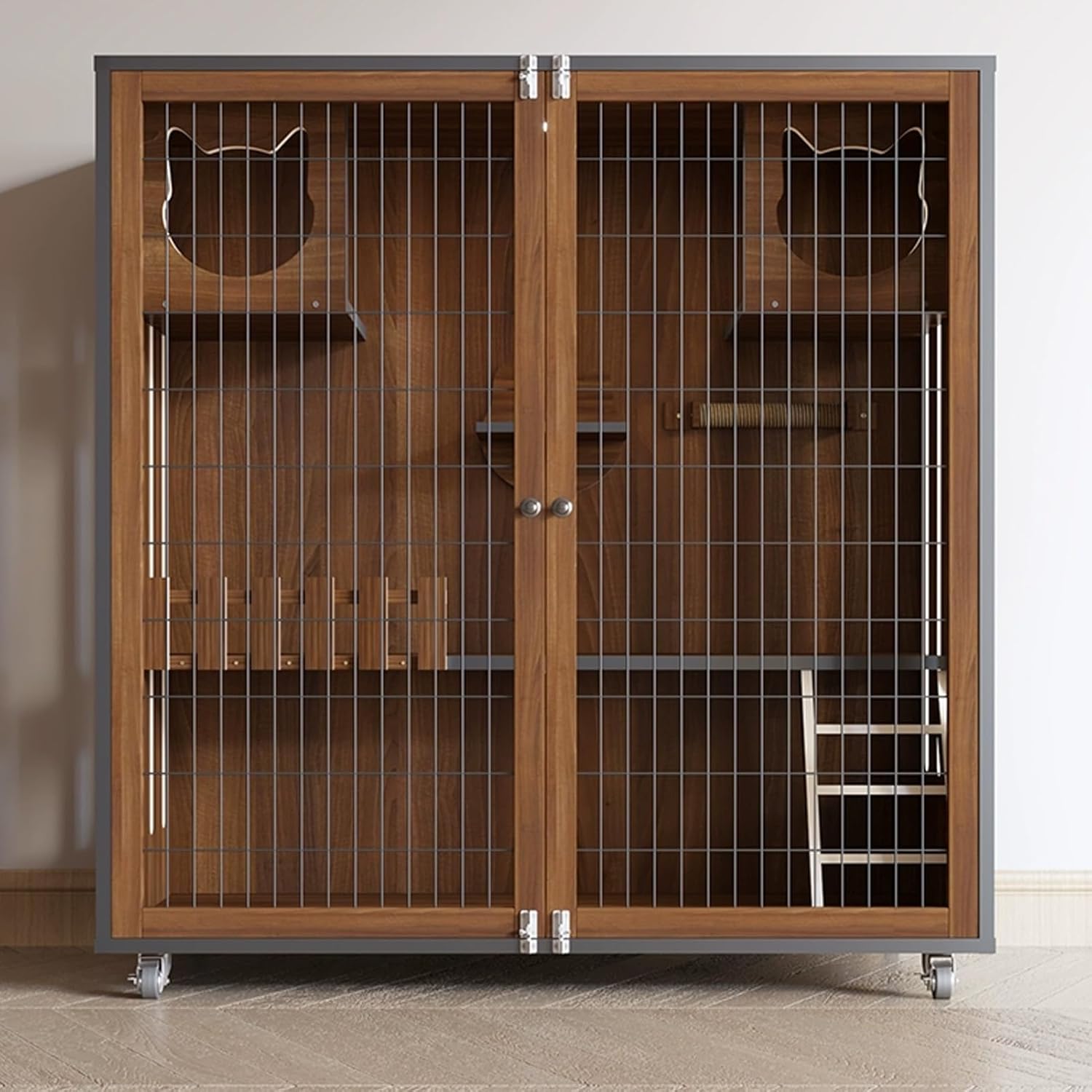 Independent night light: accompany the cat all night long, and check the cat's status at any time.Is your indoor kitty longing for a taste of the great outdoors? Give them the freedom they crave without compromising their safety with YQMHEZ Cat Fence for Large Cat CagesProduct Description:▪ Product Type: Cat Cage▪ Material: Wood + Iron▪ Color: Original Wood, Walnut▪ Assembly: Assembly Required▪ Size:23.6x47.2"/60x120cm,35.4x47.2"/90x120cm,47.2x47.2"/120x120cm,47.2x59"/120x150cm,47.2x63"/120x160cm,Notes before purchase:The cage you choose is a bare cage, and the supplies shown on the product are for display only.Packing List:Cat CagePlease Note1. Although we try our best to display the most accurate colors, colors may vary due to differences in computer monitors.2. Due to manual measurement, there will be an error of 1-3 cm in product size