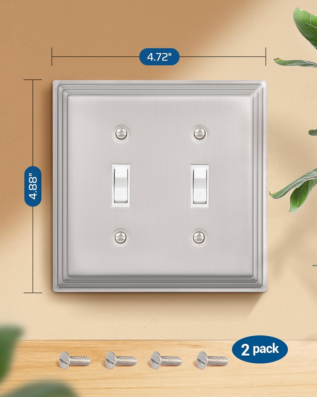 Metal Wall Outlet Cover for Receptacle, Light Switch, Brushed Nickel