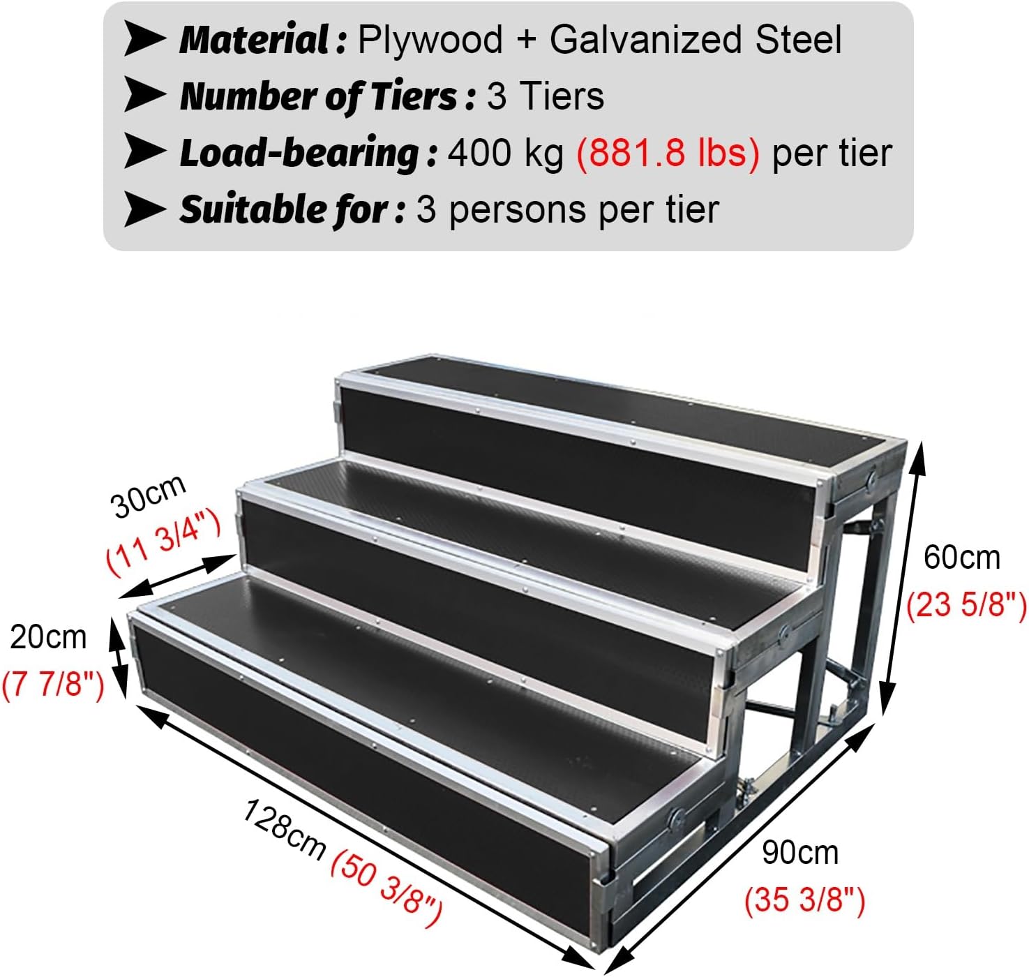 Folding Choral Stairs Stage Riser Platform Based Metal Anti-Slip Portable Multi-Level Home Theater Seating,Dark Gray Choir Stage Risers - Sturdy Choral Steps Platform for Concerts, Weddings