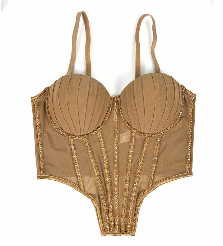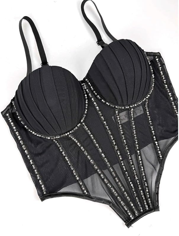 JSEIAJB Mesh Camisole Inner Vest with Chest Pads Can Be Worn Outside, Sparkling Diamond Bra Street Shot Tight Top