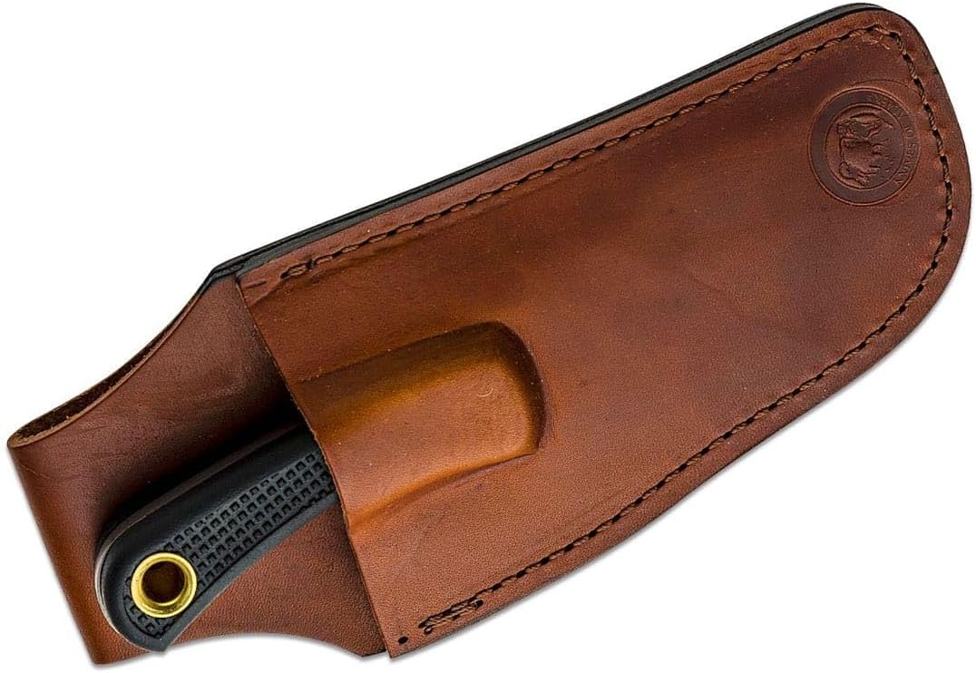 The Knives of Alaska Light Hunter Fixed Blade Knife is designed specifically for hunters who need a powerful blade to cut through medium-size bones and perform heavy duty skinning tasks. Deer, sheep, and mountain goat hunters, who hunt on extended, strenuous, high altitude expeditions, will find it to be an excellent tool that keeps the equipment weight to a minimum, yet still has enough heft to do field-dressing jobs easily and efficiently. Each Light Hunter is hand made from the same incredibly tough, fully annealed, double-drawn and cryogenically-treated D2 tool steel as the award-winning Brown Bear. The blade is a full 1/4" thick, just like the big Brown Bear; however, it is 3" shorter. Knives of Alaska also added a large capacity gut-hook, so the thick hair of sheep, mountain goats, elk, and big northern whitetails will not "ball up" as experienced with smaller gut-hooks. The SureGrip handle is well designed so it is extremely comfortable in hand and gives you full control over the blade. Includes leather sheath.