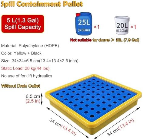Introducing our Stackable Spill Containment Pallet, the perfect solution for maintaining a clean and safe environment in various settings. Ideal for warehouses, workshops, and commercial spaces, this platform provides reliable spill containment while enhancing operational efficiency. Made from durable polyethylene, our containment pallet withstands heavy use and offers a generous spill capacity of 5 liters (1.3 gallons). Its modular design allows for easy configuration of multiple platforms to meet your specific needs, whether for industrial fluids or everyday spills. The removable grating simplifies cleaning—just rinse with water to keep it in excellent condition. Prioritizing safety, our non-slip design helps prevent accidents during transportation, ensuring items remain securely in place. The nutted drain spout also enables quick and hassle-free draining of spilled liquids, making cleanup easy. Suitable for a variety of applications, from maintenance tasks to supermarket setups, this spill containment solution meets industry standards and adds value to your workspace by preventing spills from reaching the ground. Please ensure you choose the appropriate size before purchasing. Our Stackable Spill Containment Pallet combines functionality with practicality, making it essential for any facility focused on safety and efficiency. Invest in a cleaner, safer environment today.