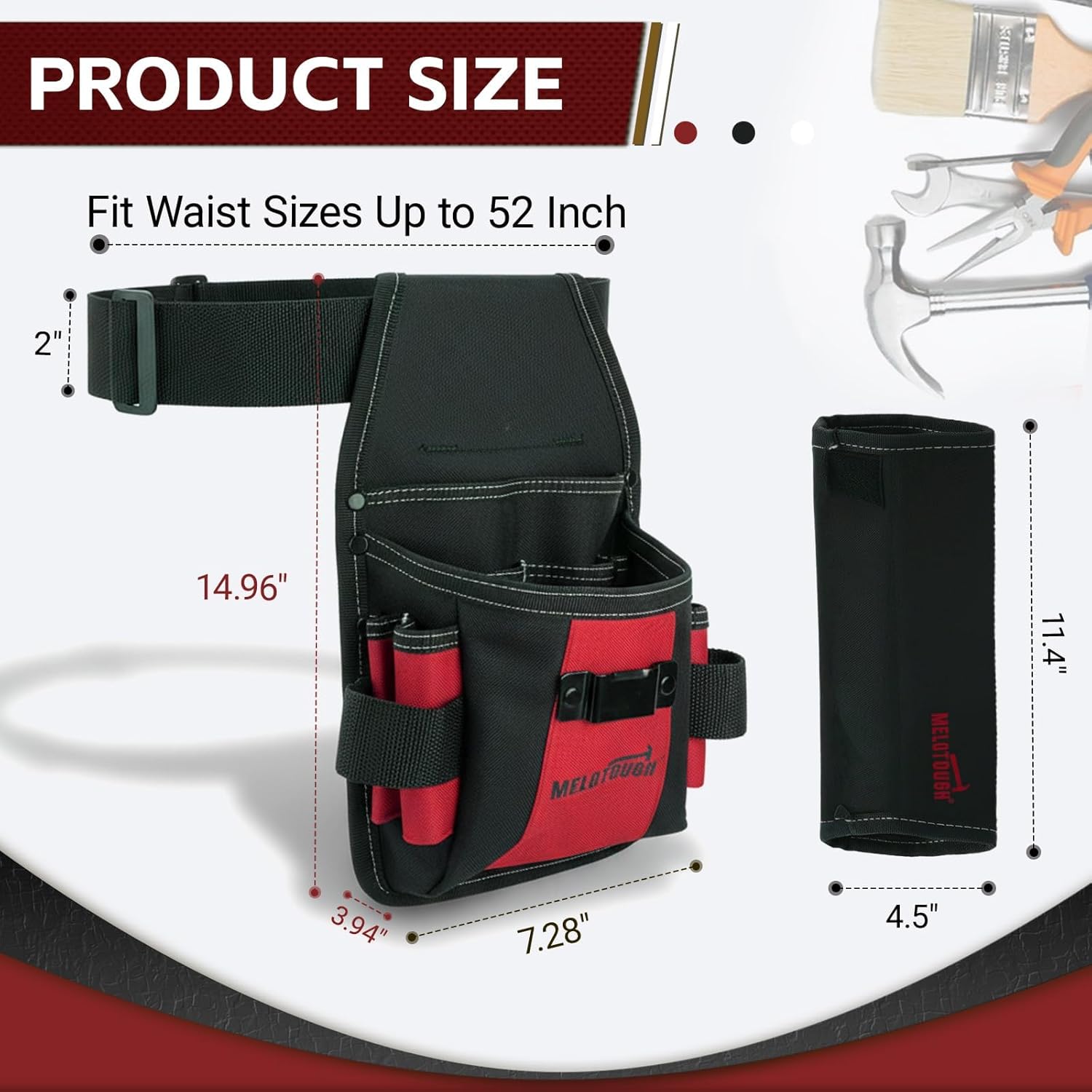 MELOTOUGH Professional 14-Pocket Compact Tool Belt Pouch Set with Detachable Hammer Loop,Small Tool Pouch for Electricians, Contractors, Roofing & HVAC Work + MELOTOUGH Tool Belt Pouches with Detachable Hammer Holster, Utility Electrician Tool Pouch with 2-Inch Wide Adjustable Belt for Electrician, Carpenter, Construction (Red)