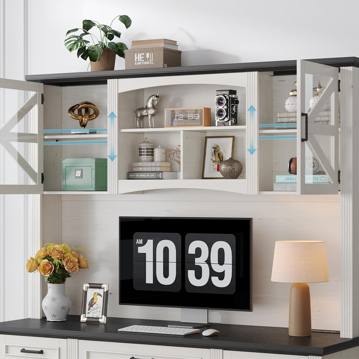 | Storage Options | hutch, storage cabinet, 5 drawers, shelving |