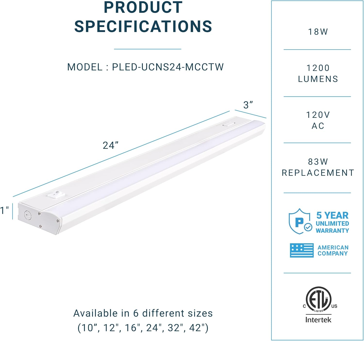 | Model Name | 3CCT Hardwired LED Under Cabinet Light - Color Temperature Switch - Dimmable |