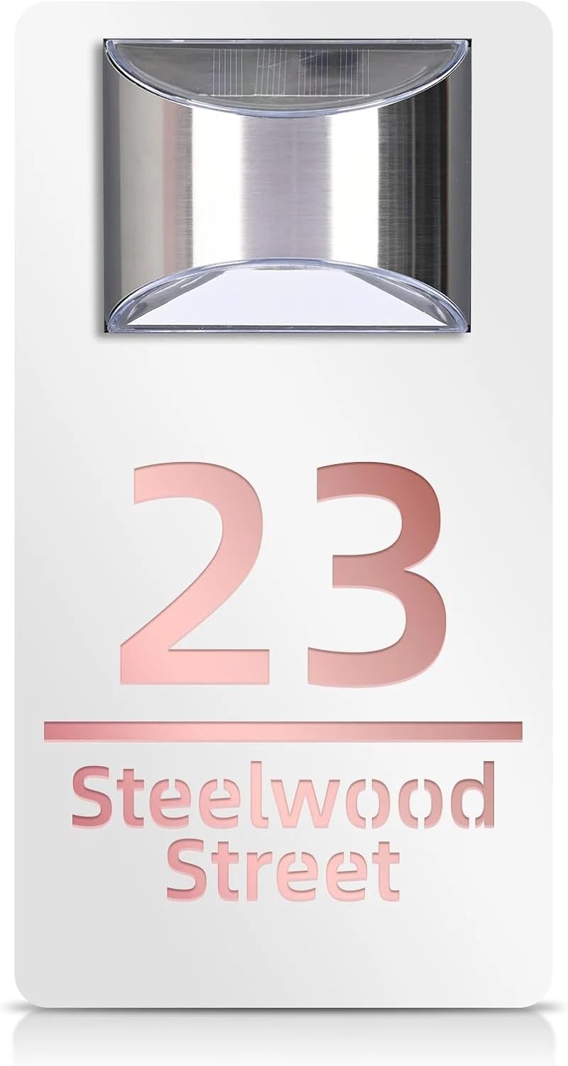 Product Name: Solar House Address Sign Material: Acrylic Size: 15x28cm(5.9x11in), 18x32cm(7x12.6in), 20x36cm(7.8x14.2in) Features: 1.Lightweight, rustproof, waterproof, and it can be used outdoors, not afraid of the sun or rain. 2.Solar lamp function, automatic lighting at night, closed during the day, charging with solar energy. 3.Customized, unique: This custom solar house sign with a personalized house number is carved to ensure that each product is unique. Make your house sign unique and personal. 4.Environmental protection and energy saving, solar power supply: equipped with solar lights, automatic charging during the day, automatic lighting at night, no external power supply, environmental protection and energy saving. It not only provides you with lighting functions, but also reflects the concern for the environment and the concept of energy conservation. 5.Multi-scene application, practical and beautiful: suitable for doors, courtyards, gardens and other scenes, not only play a role in marking, but also add decorative effects to your house. Both practical and beautiful, it is an integral part of your home decor. Make your home more warm and comfortable. Note: 1. There may be some slight difference between the photo and the actual color tone. 2. Please allow a little difference due to manual measurement.