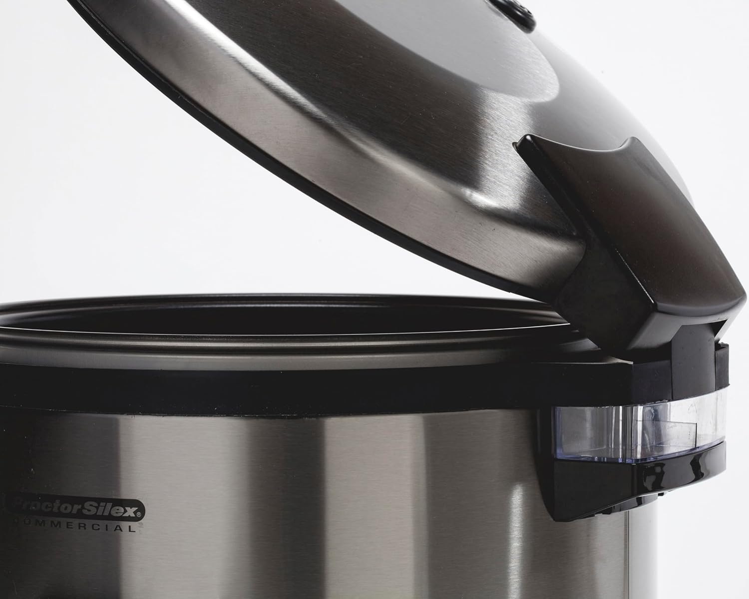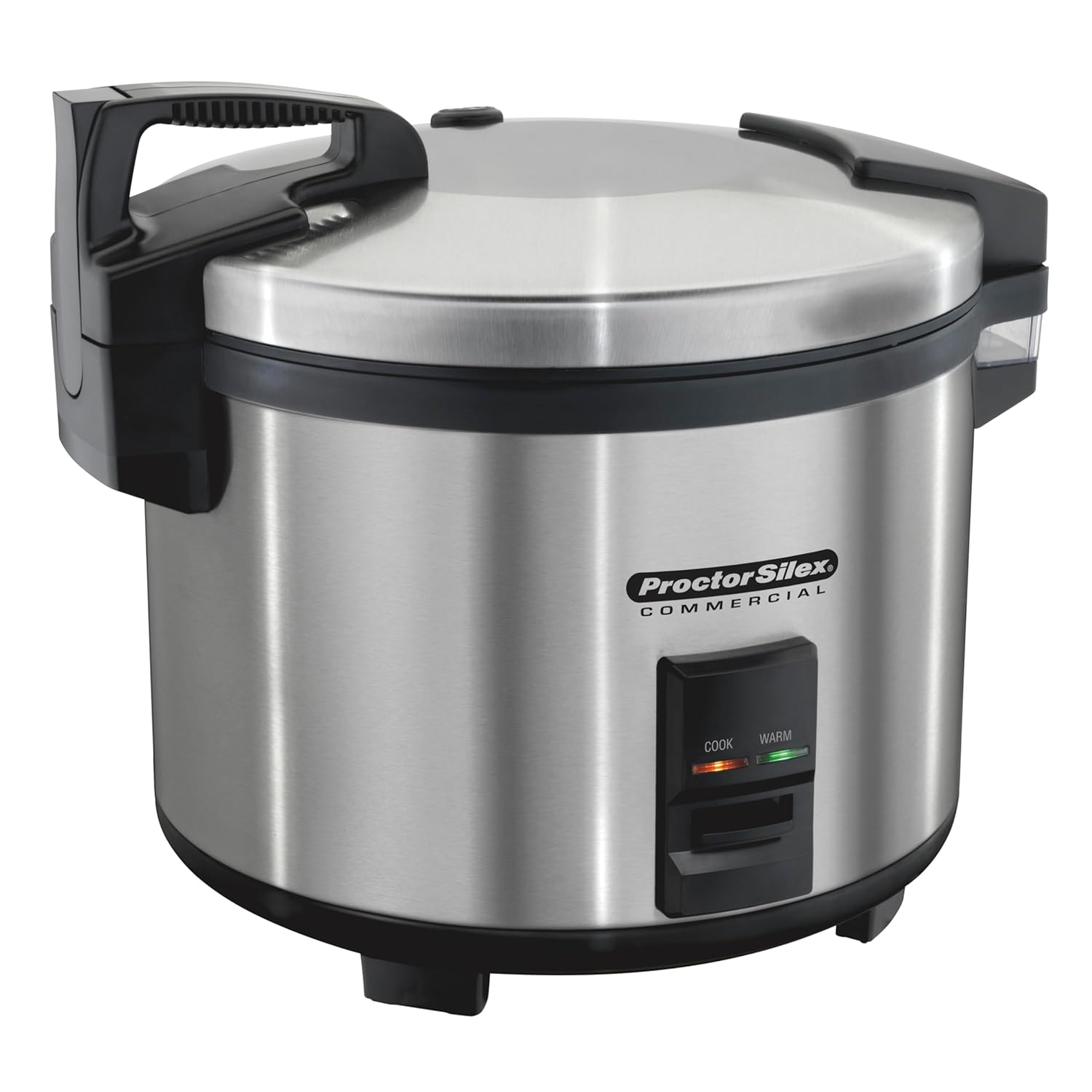 Restaurants that serve high volumes of rice rely on the Proctor Silex Commercial Rice Cooker to cook and keep 60 cups of rice warm and ready to serve. From sushi and stir-fry to fusion rice bowls, having perfectly cooked rice right on hand is key for optimizing service. The Proctor Silex Commercial Rice Cooker is built to last through constant rigorous use. The insulated, double-wall stainless steel construction and interior heating components keep rice warm without hot spots and maintain food safe temperatures for up to 12 hours. Certified by NSF and ETL for food safety and reliable performance. Includes removable nonstick inner pot and rice paddle.
