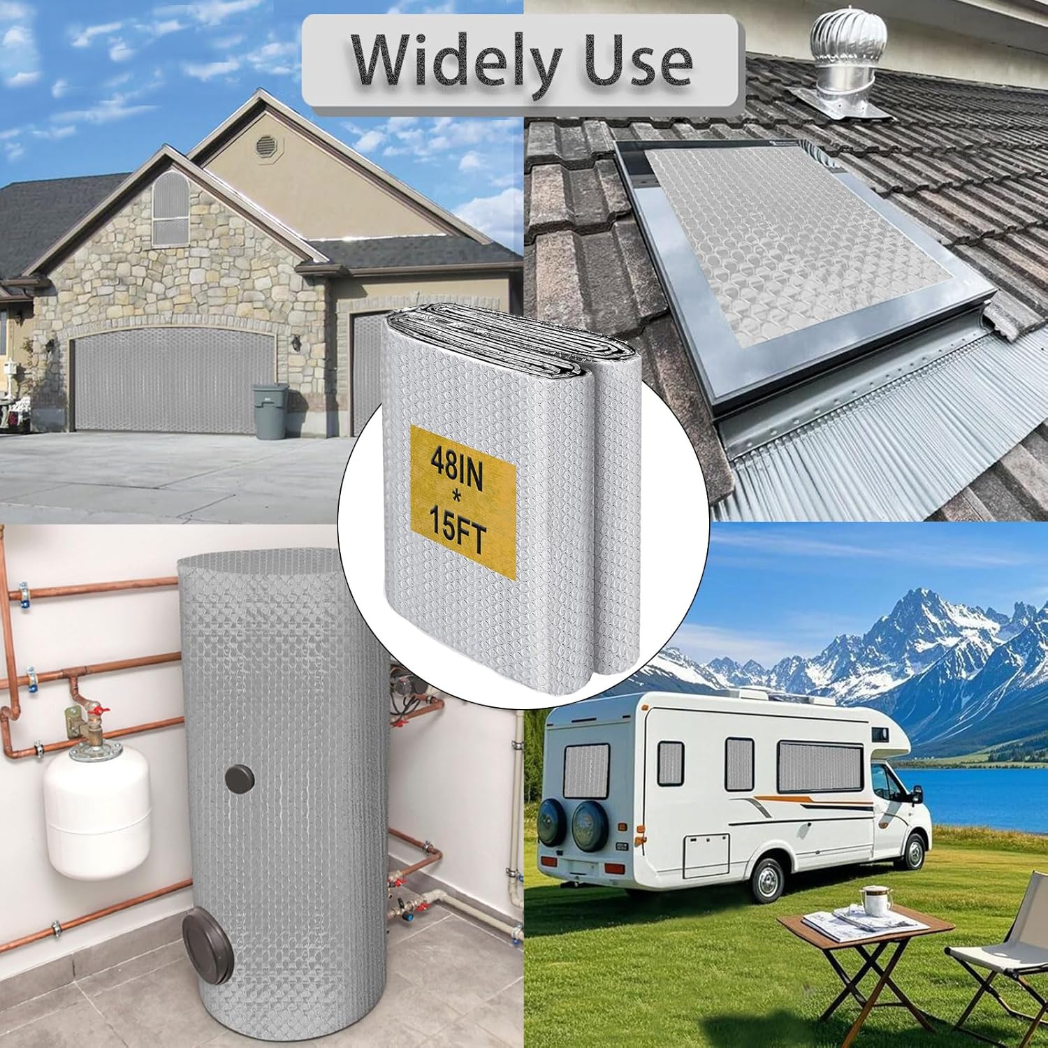 Reflectix Insulation Roll, (48IN X 15FT) Reflective Foil Insulations, Reflective Window Insulations for Summer Heat, Aluminum Foil Insulation Radiation Barrier for Windows, RV, Garage Door