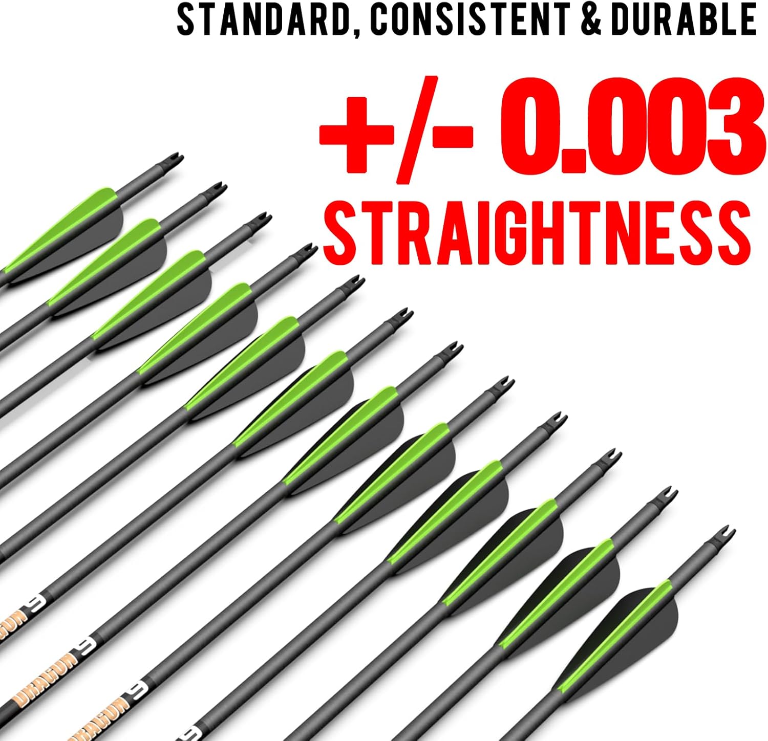 Package 1: 24pcs Dragon 8 Pure Carbon Arrows Straightness: +/-.006" 440 SpinePackage 2: 12pcs Dragon 9 Pure Carbon Arrows Straightness: +/-.003" 450 Spine