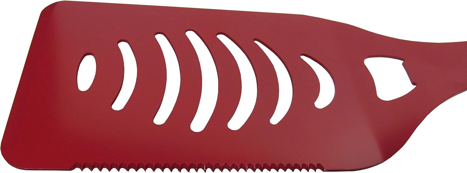 • The spatula features a bottle opener and serrated edge for cutting on the go