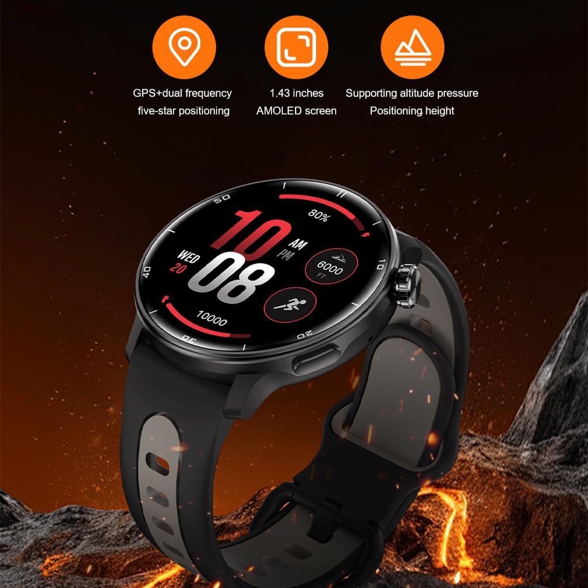 Screen size: 1.43 inchesScreen resolution: 466 * 466Bluetooth: BLE 5.3+BTScreen type: AMOLED high-definition screenAppearance: CNC aluminum alloy frameWaterproof: 30 meters waterproofBluetooth call: stable call over 20 meters/clear callCharging method: Magnetic chargingCharging time: about 2 hoursAPP supports languages/Device side supports languages: English, German, Japanese, French, Italian, Spanish, Russian, Portuguese, Chinese