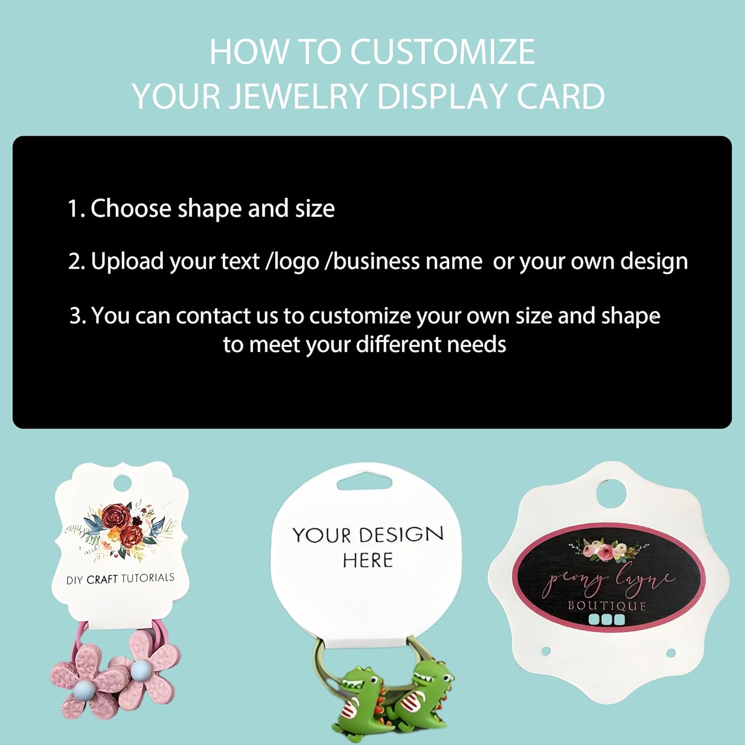 Elevate your jewelry display with these versatile and customizable jewelry cards. Crafted from durable materials, these cards offer a range of shapes and sizes to perfectly showcase your necklaces, bracelets, earrings, and more. Personalize them with your brand's logo or text for a professional touch. The fold-over design allows for easy packaging and presentation, while the hanging hole ensures a seamless display. Whether you're a jewelry maker, boutique owner, or crafter, these display cards are an essential accessory for organizing and showcasing your precious pieces. Upgrade your jewelry presentation and leave a lasting impression with these stylish and functional display cards.