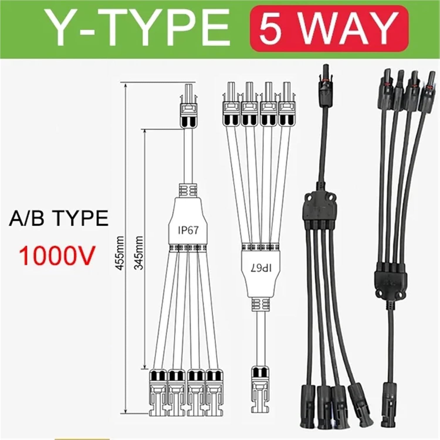 Rectangular Connectors1/5 Sets 30A 1000V Y Type PV Connector Solar Panel Parallel Connection Solar Cell Photovoltaic PV Plug 1 To 2/3/4Way Connector