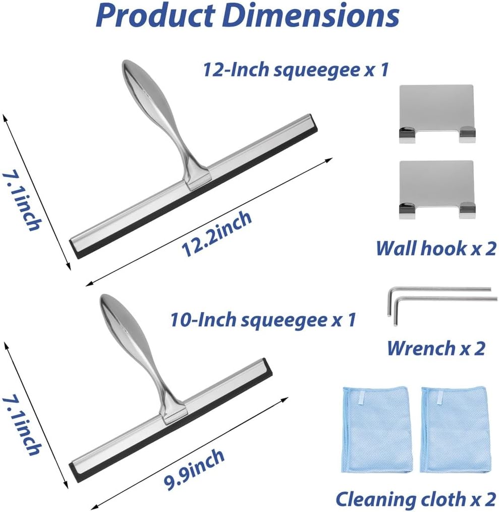 Color: silver Material: stainless steel Product size: 10 inches 12 inches Package Includes: squeegee x 2 Note: - Please refer to the measurement. Tiny measuring error is allowable in normal range. - There might be a little color difference due to the monitor, camera or other factors, please refer to the physical item.