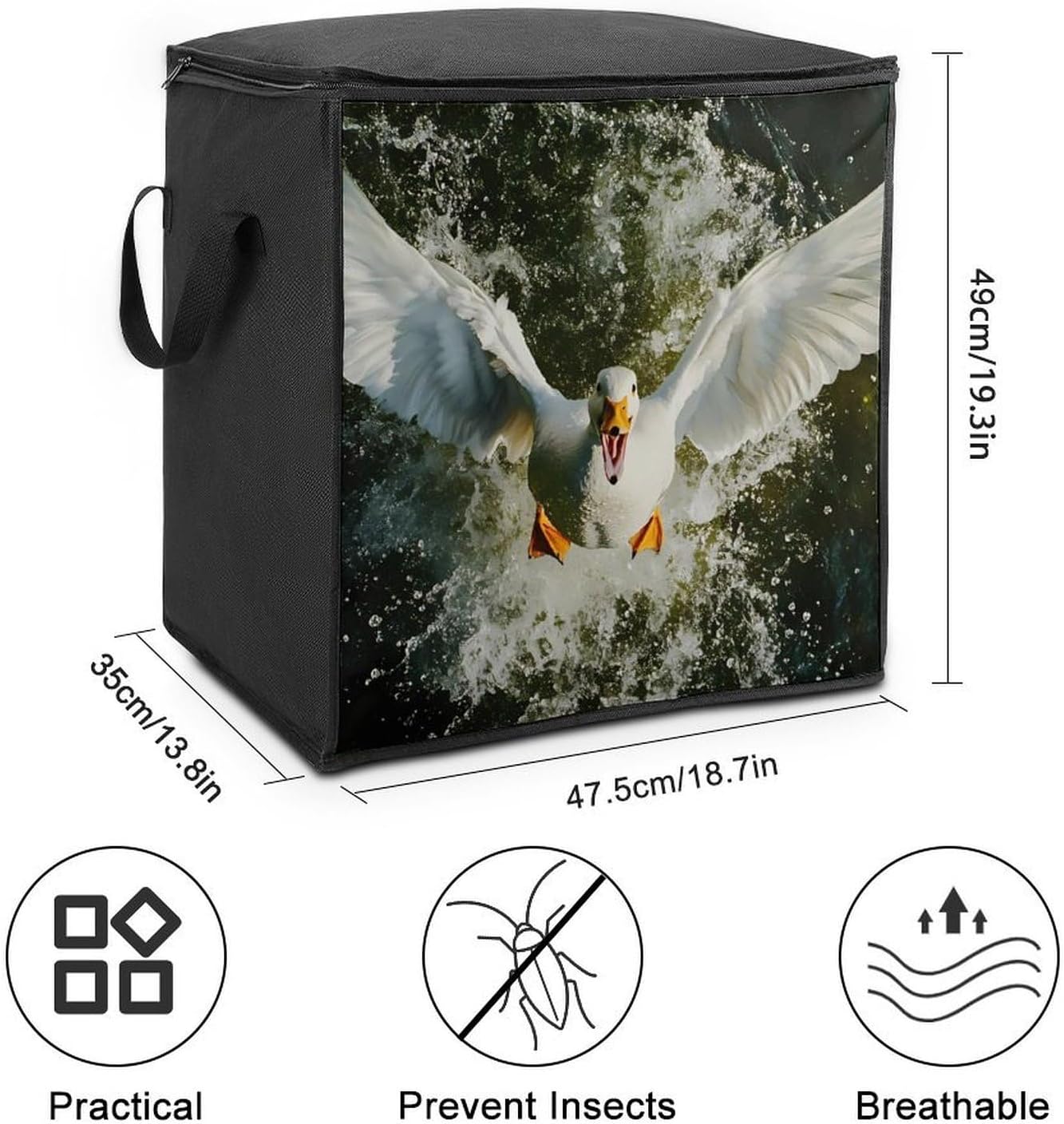 Make seasonal storage easy and efficient. This comforter storage bag is made of polyester material, which is strong and wear-resistant. It can protect your clothes and bedding from moisture and dust for a long time. The 70L large capacity can easily store heavy winter quilts, down jackets, blankets and other large items. The handle design makes moving more effortless