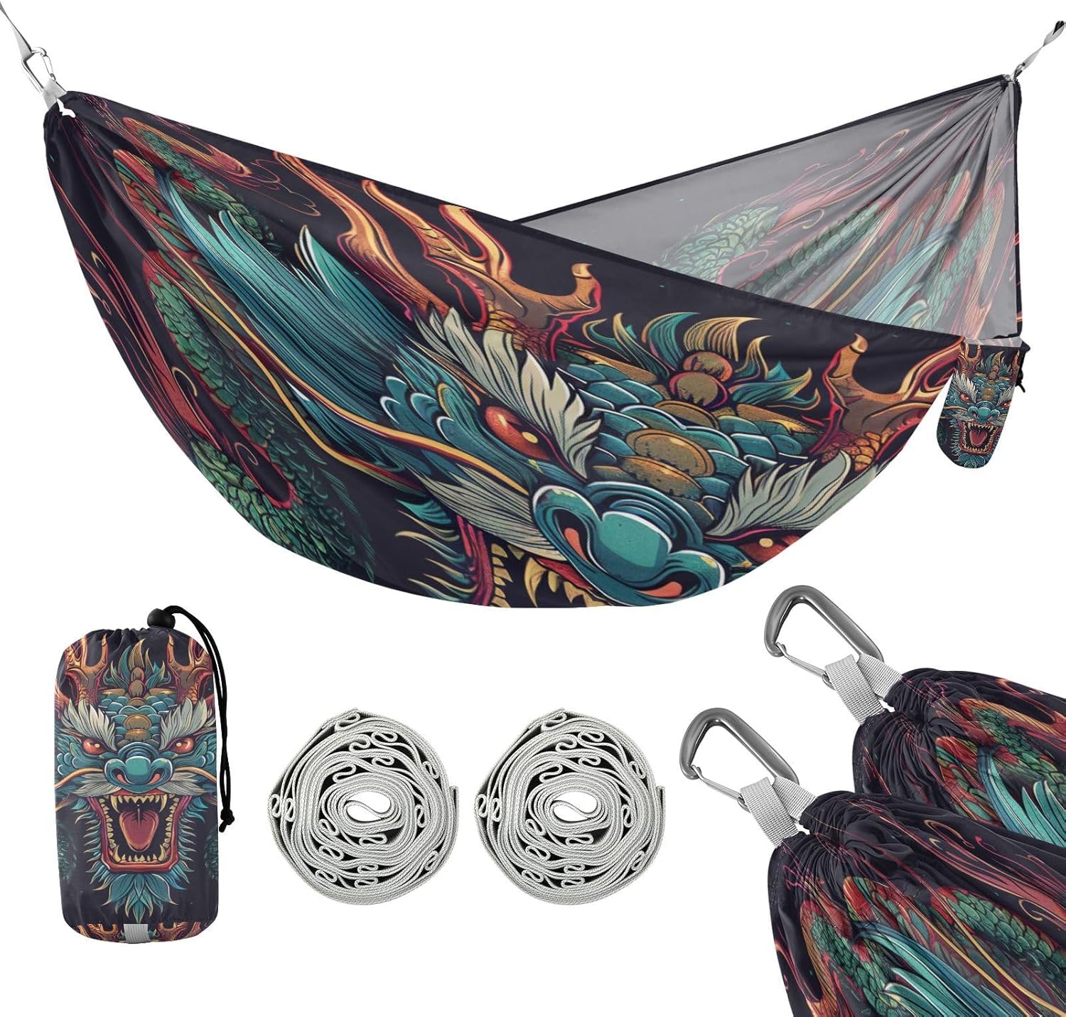Reliable Outdoor Relaxation This practical hammock delivers comfort and convenience for outdoor enthusiasts using quality materials and thoughtful engineering. Technical Details Material: 100% polyester (210T taffeta body; 600D polyester straps) Hardware: Aluminum carabiners Load Capacity: 500 lbs (227 kg) Packed Size: Approx. 7 x 5 inches (18 x 13 cm) Durable Construction Reinforced triple-stitched seams at stress points Quick-drying material Practical Applications Camping and backpacking Hiking rest breaks Beach and park outings Family relaxation Travel and festivals Package Includes 1. Hammock 2. Straps (2m each) 3. Carabiners 4. Storage sack Designed for Easy Use Sets up in minutes without tools. The balanced design provides stable support, while the breathable fabric prevents overheating during extended use.