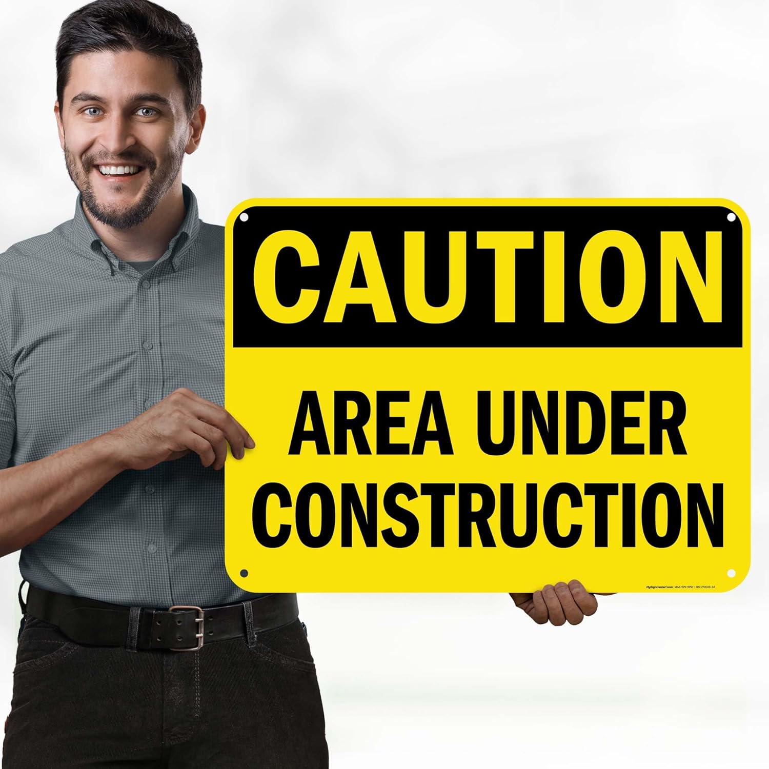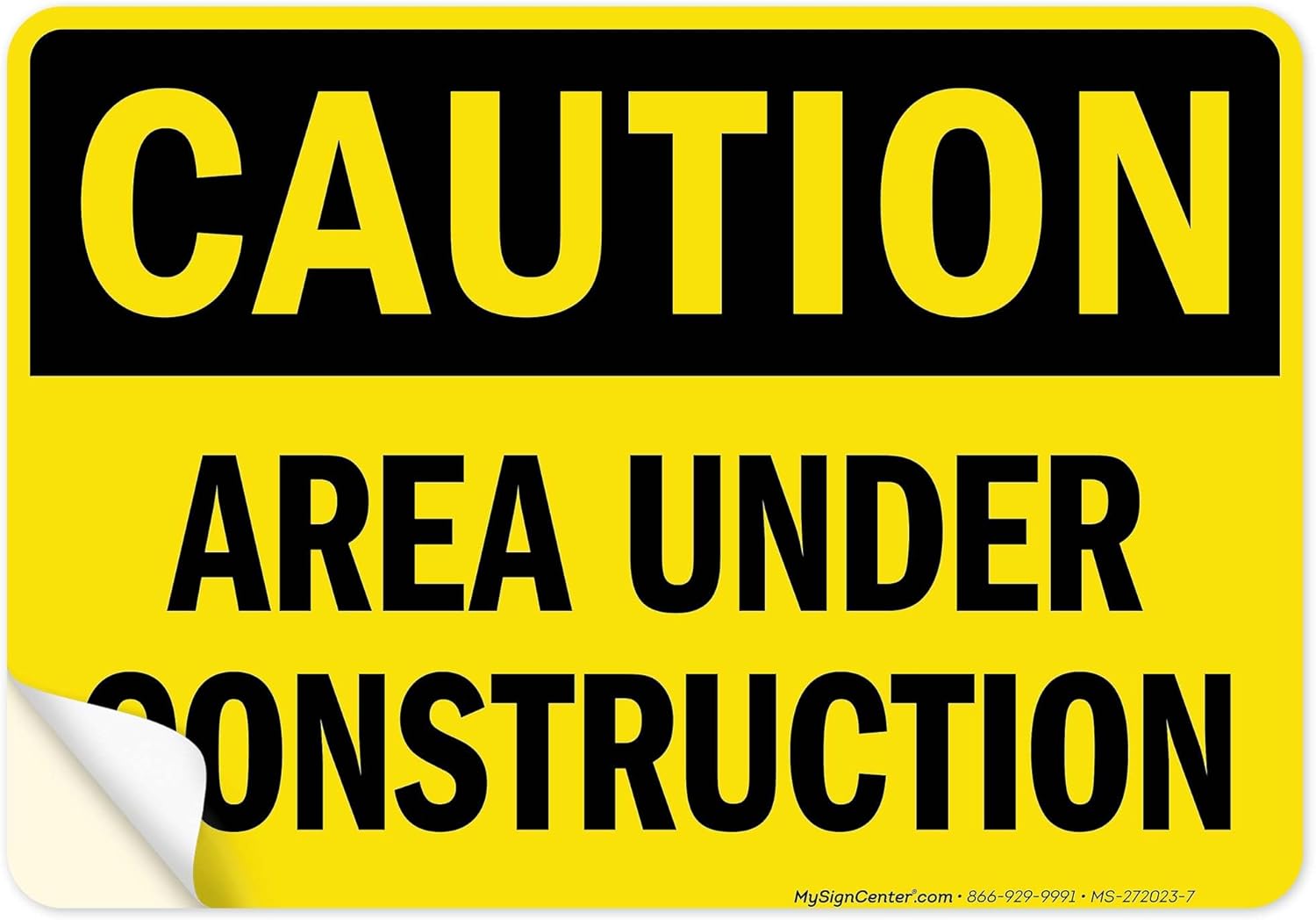 Caution Area Under Construction Sign, 18x24 Inches, 55 mil thick HDPS (high density polystyrene), Made in USA by My Sign Center