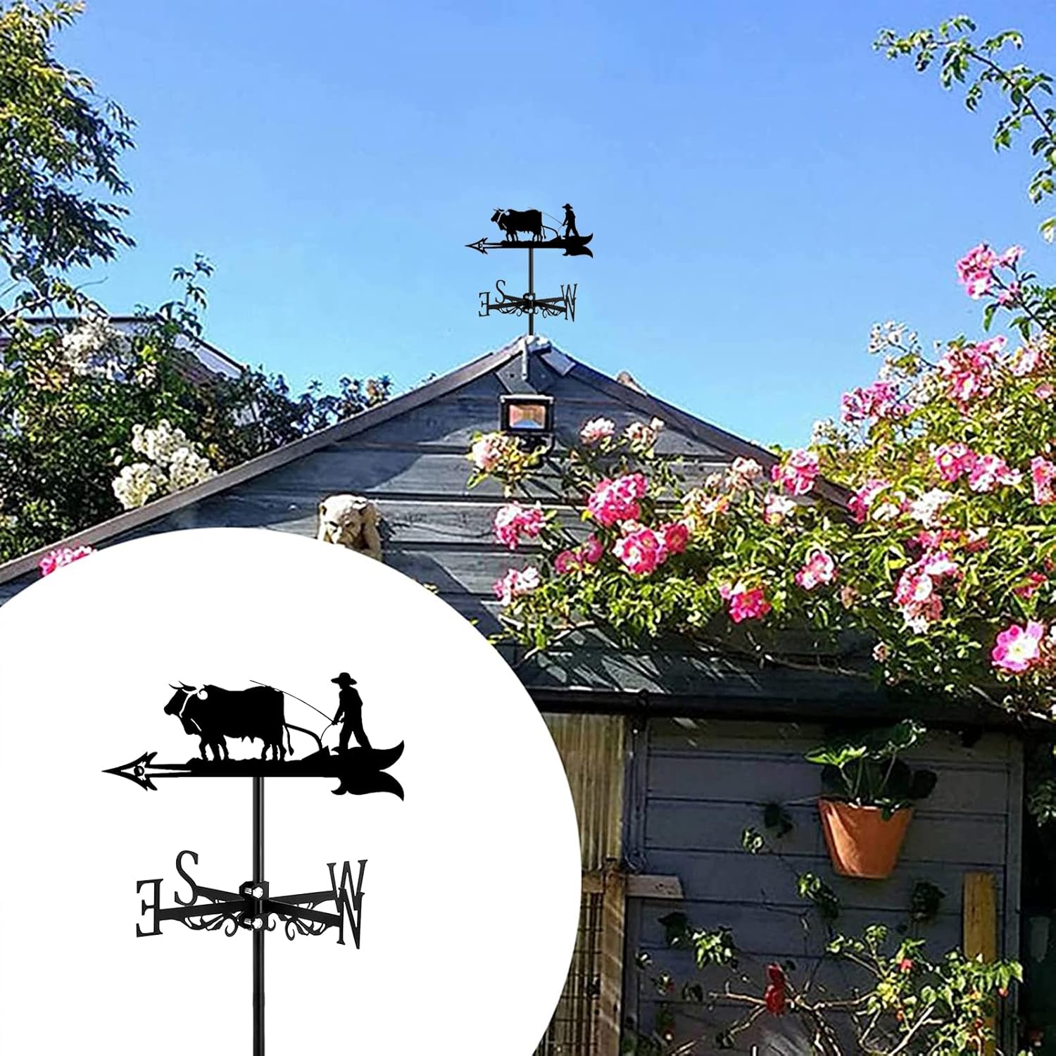 SPECIFICATIONMaterial: IronProduct size: 50 x 35cm/19.7x13.8inProduct weight: 500gArchitectural style. Elegant, hand formed and attractive statement piece . This kind of weather vane is not only beautiful, but also useful for knowing which direction the wind is heading.Decorative weather vane. A weather vane of this size is perfect for your house, garden, garage, cupola, barn or pavilion. Decorate your roof at weddings, birthdays or other party supplies.PACKING LIST:1*Weather vaneNOTE:1. Due to the difference in light and screen, the color of the product may be slightly different from the picture.2. Due to manual measurement, please allow a difference of 1-3cm.