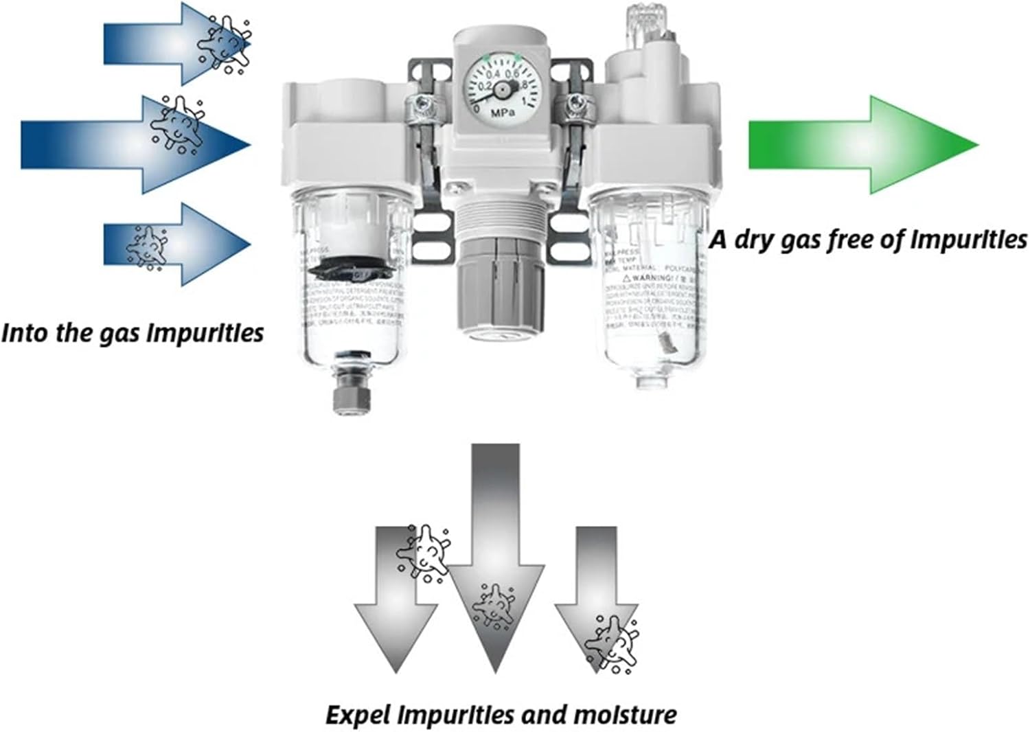 Filter ValveType : Source Treatment UnitModel Number : AC10-AC60 Modular F.R.L. UnitsProof pressure: : 1.5MPaMax. operating pressure: : 1.0MPaSet pressure range: : 0.05~0.85MPaAmbient and fluid temperatures: : 5 to 60 Celsius