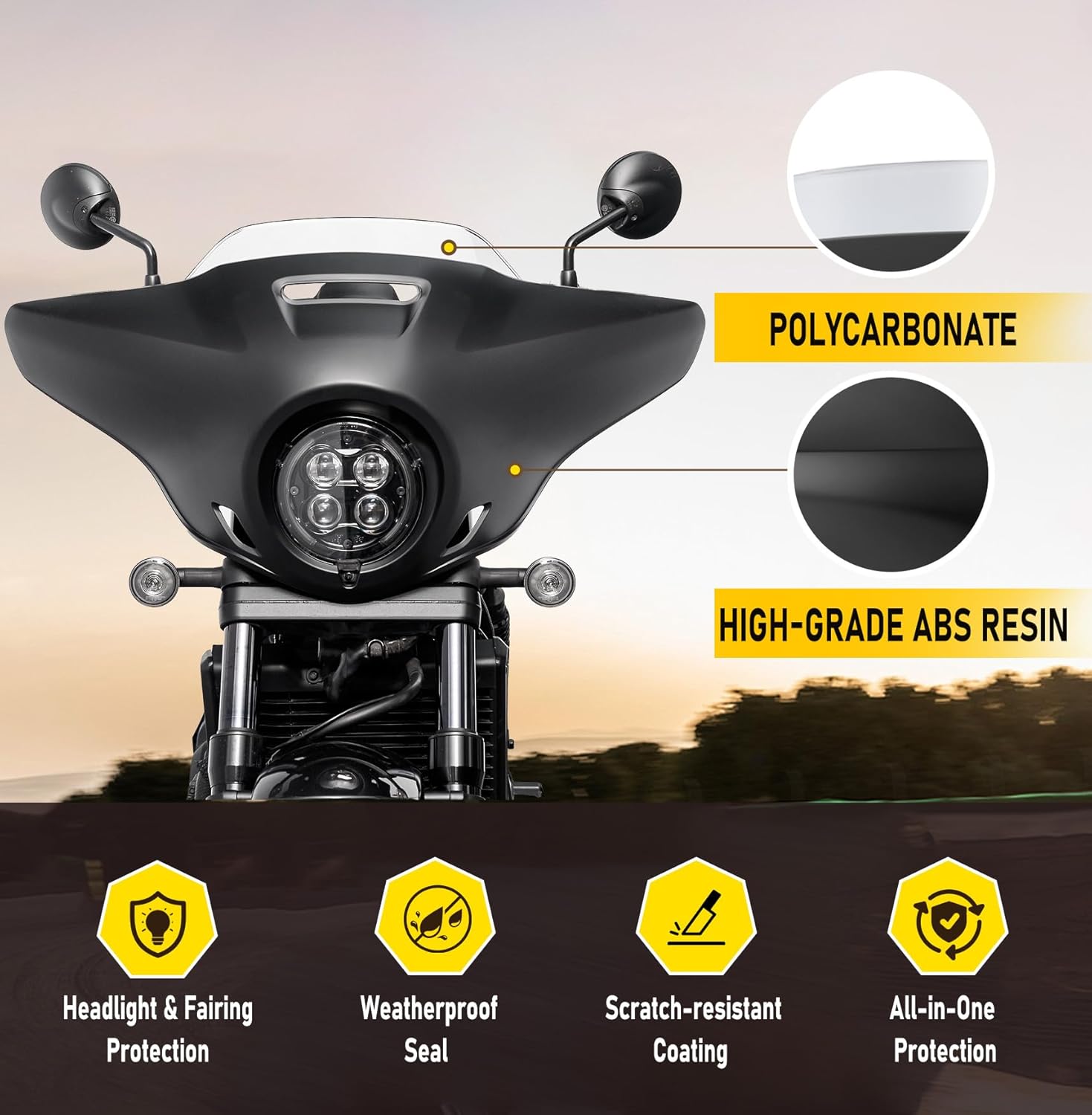 | Included Components | 1 Piece Headlight Cowl Fairing, 1 Piece Windscreen Visor, 1 Set Mounting Bracket, 1 Set Mounting Hardware Screw Kit |