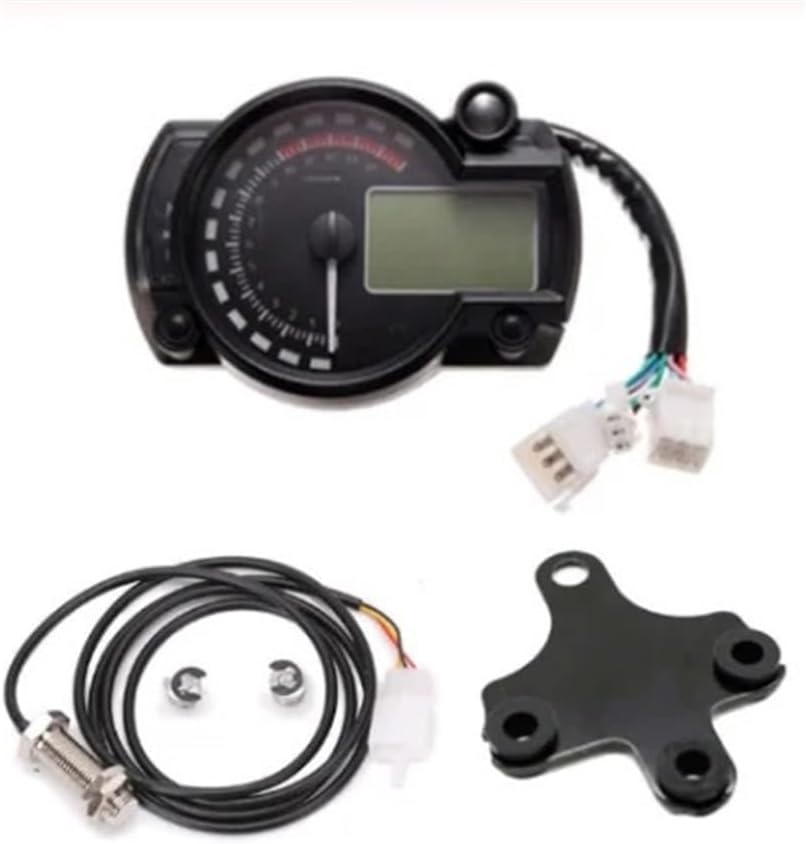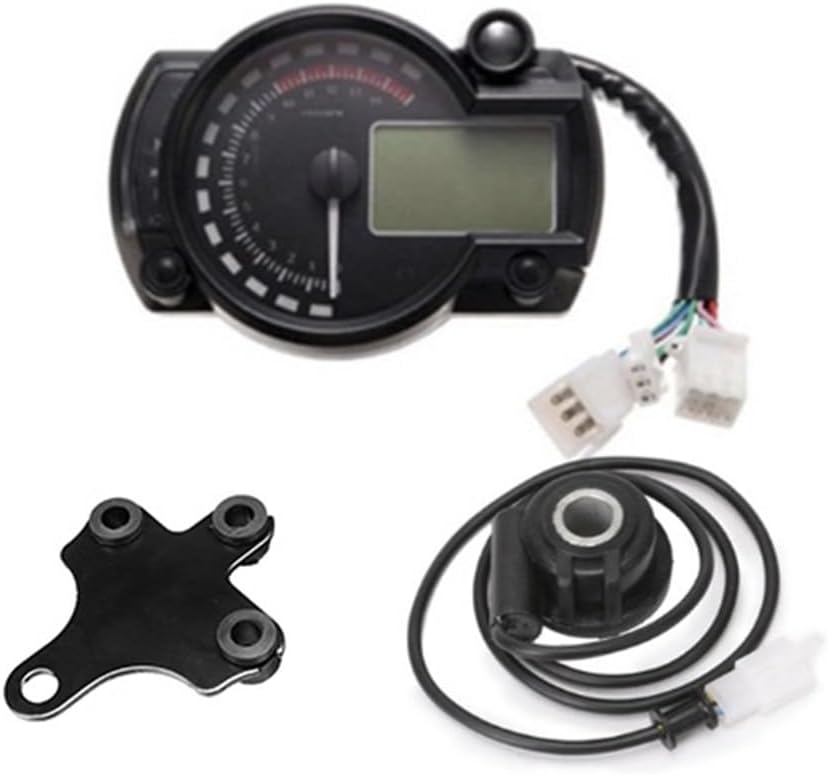 Universal Digital Motorcycle FOR RX2N Odometer Tachometer Meter Instrument Adjustable MAX 299KM/H Dashboard Gauge Material: ABS plasticColor: blackSize: 140 * 99mm / 5.5 * 3.9inSpeed Sensor Cable Length: approx.125cm / 49.2inSpeed Sensor Size(L * D): 40 * 12mm / 1.6 * 0.5inWorking Voltage: DC 12VSpeed Display Range: 0~299km/h(mile)Odometer Display Range: 0~99999.9km(mile)Trip Meter: max.999.9kmGear Position: 1 to 6Backlight Color: nomally color is blue, 7 colors adjustableWiring Instruction: shown as the instruction along with the product packagePackage Weight: approx.422gPackage List:1 * Motorcycle Tachometer1 * Speed Sensor2 * MagnetsMaterial Type : ABS+PCBItem Weight : 0.5kgMax speed : 299km/hRPM : 14000Color : 7 color adjustableHope you can buy your favourite products in the shop, welcome to the next visit.