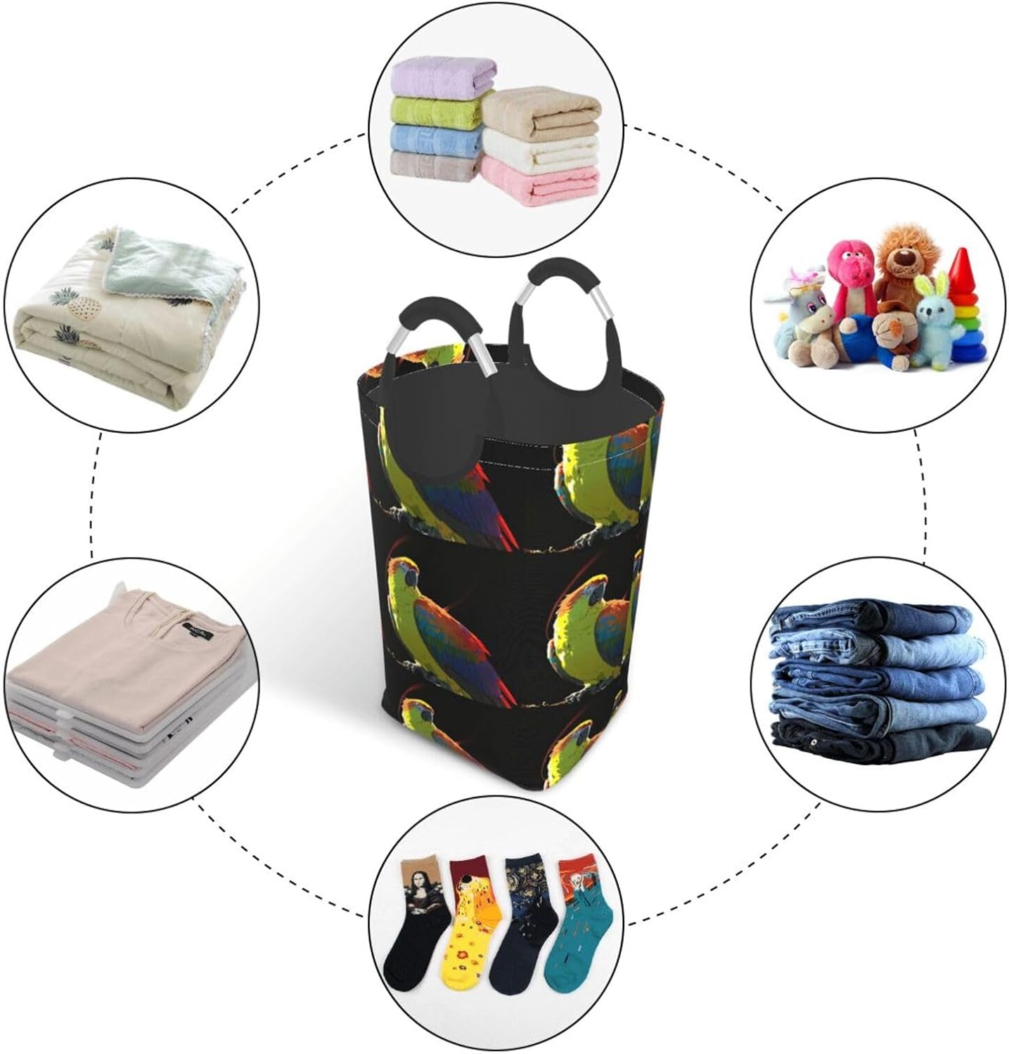 Our Neon Parrot dirty clothes storage bag is made of polyester, which is lightweight and flexible. It can maintain a stable shape even under heavy pressure and collision. At the same time, the incorporation of Oxford cloth material significantly improves the durability of the product, and it is resistant to wear, bumps and pulling. The storage bag is designed with a large capacity, which can easily carry winter clothes, daily clothes and a variety of sundries. It is easy to carry and store, and fits tightly into the gap of the suitcase after folding. The aluminum handle is sturdy and reliable, supports hanging, and is suitable for a variety of places. In terms of design, it adopts leak-proof technology, combined with waterproof coating and precision sewing, which is effectively waterproof. The exterior uses cutting-edge transfer technology, and a PE board support is added at the bottom to ensure stable load-bearing and prevent tipping. This storage bag is practical and easy to use, and is an ideal choice for travel and home.