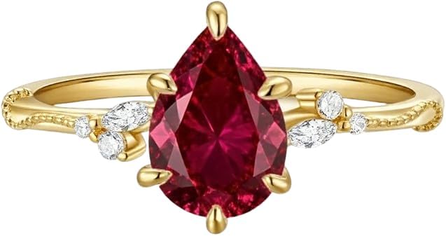 Elevate your love story with this extraordinary IGI - certified engagement ring, where the passionate, vibrant allure of a pear - cut ruby takes center stage. As the July birthstone, ruby symbolizes love, courage, and passion, infusing the ring with profound personal meaning. Seamlessly blending natural gem beauty and modern craftsmanship, it’s available in 10K, 14K, 18K solid gold (white, rose, or yellow gold options) or S925 sterling silver — perfect for crafting a piece as unique as your bond. At its core lies a captivating pear - cut ruby, IGI - certified for exceptional quality. The ruby’s rich, deep - red hue evokes a sense of romance, strength, and timeless elegance, making it a heartfelt choice for those who cherish life’s passionate moments. Complementing this centerpiece are delicate moissanite accents along the band, each lab - created gem boasting D color and VVS clarity for diamond - like brilliance, all while being 100% moissanite. This ring is more than just jewelry; it’s a canvas for your journey. Personalize it with free engraving: etch initials, anniversary dates, or a heartfelt vow to transform it into a one - of - a - kind heirloom. Whether you’re sealing an engagement, celebrating a wedding, or honoring a July birthstone - inspired milestone, its versatile design suits every occasion. Meticulously crafted for durability and beauty, the solitaire - style setting highlights the ruby’s vivid charm, while the moissanite accents add a touch of modern grace. Choose your metal (gold or silver) and gold tone (white/rose/yellow) to match your style, then let the July birthstone - charged ruby and sparkling moissanite accents tell your unique love story.