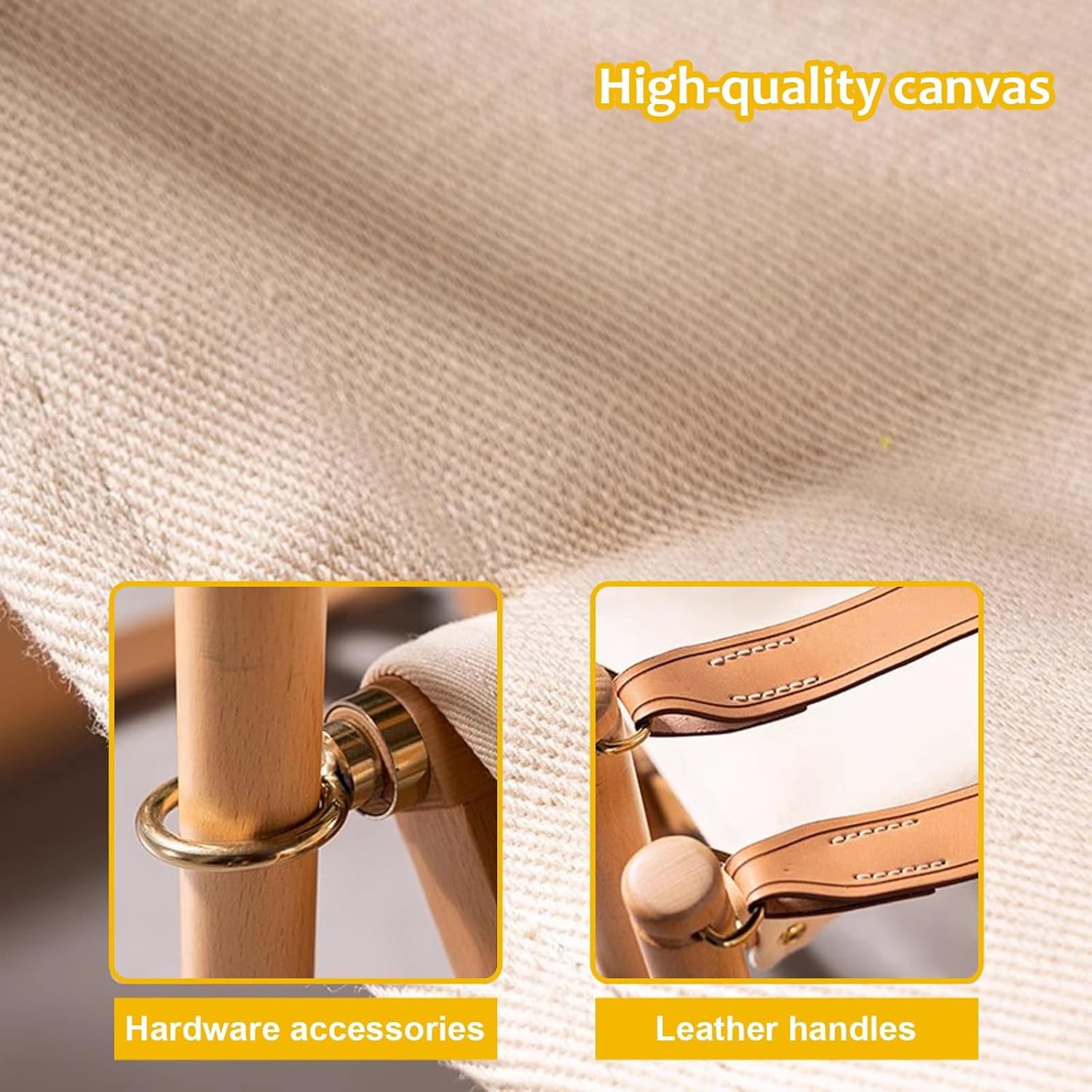 LLZJDDPLY Folding chairThis folding chair has a simple appearance, and the legs highlight the beautiful lines. The overall design focuses on simplicity and comfort, abandoning the complicated and curved lines, and the shape is more refined. The foldable design saves space and fits the curve of the spine. It is comfortable to sit and lean on for a long time without feeling tired, and it is full of design sense.Product advantages:Strong and durable canvasThickened cushion, fits the human body curve, delicate and beautiful, smooth linesBeech wood bracketMade of beech wood, hardware reinforcement brings more stable support Carefully selected materials, strong load-bearing capacityAdapt to various space styles, home, balcony, restaurant, milk tea shop and other occasions, no matter where it is placed, it has a linear beautyMaterial: Canvas + Saddle leather + BeechOverall dimensions: (L*W*H) 42*50*87cm/17*20*34inSeat height: 49cm/19inLoad capacity: 200kg/440lbsPacking list: 1/piece▲The color is based on the picture shown. Due to the different degrees of color difference in shooting light, please refer to the actual product!