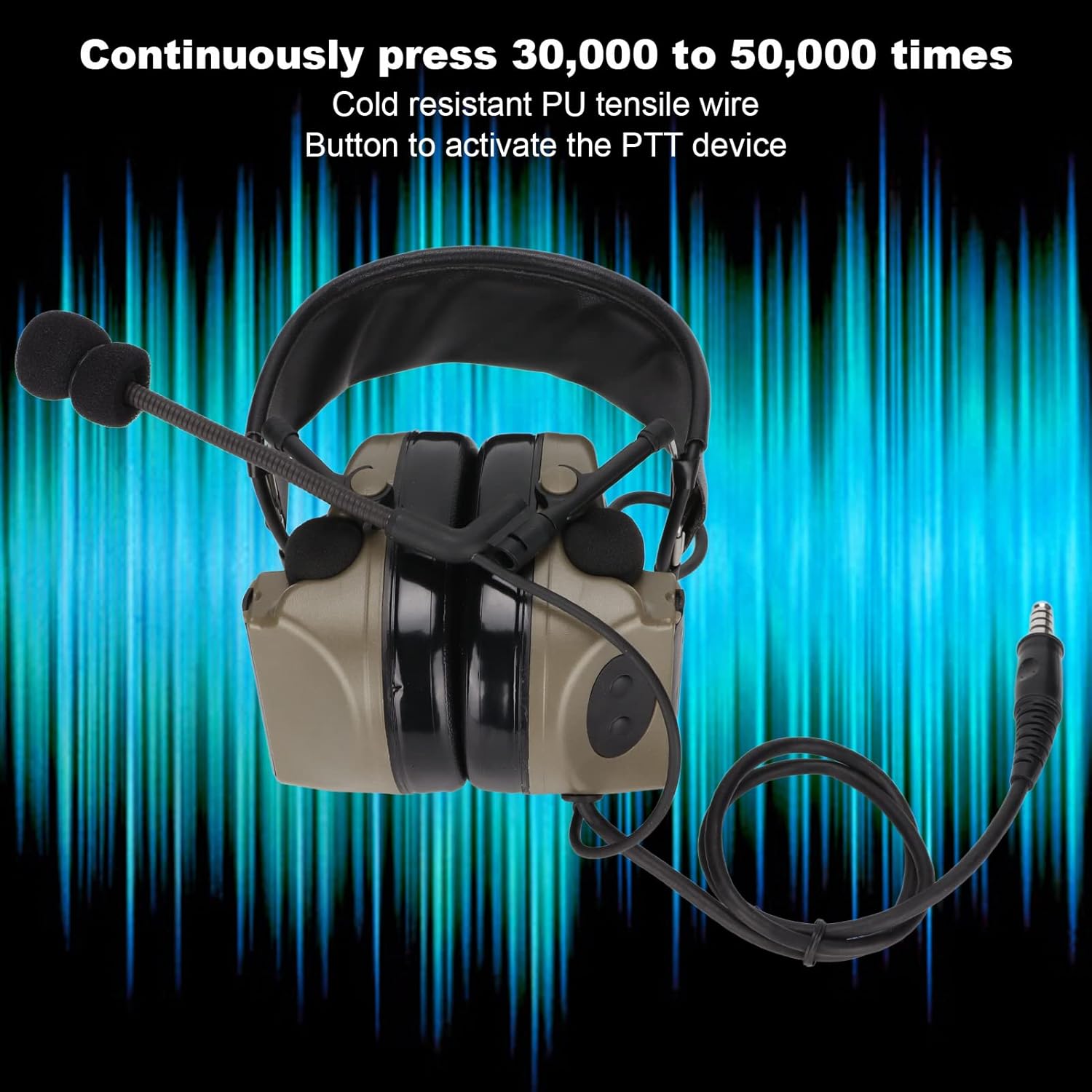 Feature: 1. Noise Reduction: Military headsets use electronic active noise reduction and sound collection technology to provide you with clearer sound and ear protection. 2. Dusoof Chip: This earphone chip has a good film layer protection, which can provide higher defense and dusoof, PTT is suitable for 3.5mm mobile phone plugs. 3. Comfortable: Silicone earmuffs, instead of ordinary sponges, have high elasticity and sturdiness, the cowhide headband on the top layer is not easy to deform and is more comfortable to wear. 4. High Quality Material: The headphone plug cable is made of cowhide and TPE out layer, which are resistant to stretching, freezing, high strength, and not easy to age and harden. 5. U94 PTT: U94 PTT can be pressed continuously for 30,000 to 50,000 times, with cold resistant PU tensile wire, strong toughness, button activation, with a clip, can be hung on clothes or belts. How to Use: 1. Extend the headband. 2. Pull out the cups, tilt the upper section of the cup outward so that the wire is on the outside of the headband. 3. Adjust the height of the cups, slide the cup up or down while holding on the headband. 4. The headband should be across the top of the head. 5. Before you collapse the headset,slide the cups in all the way. 6. Collapse the headband, make sure that the sealing cups are not creased and that they lie flat against each other. Specification: Item Type: Military Headse