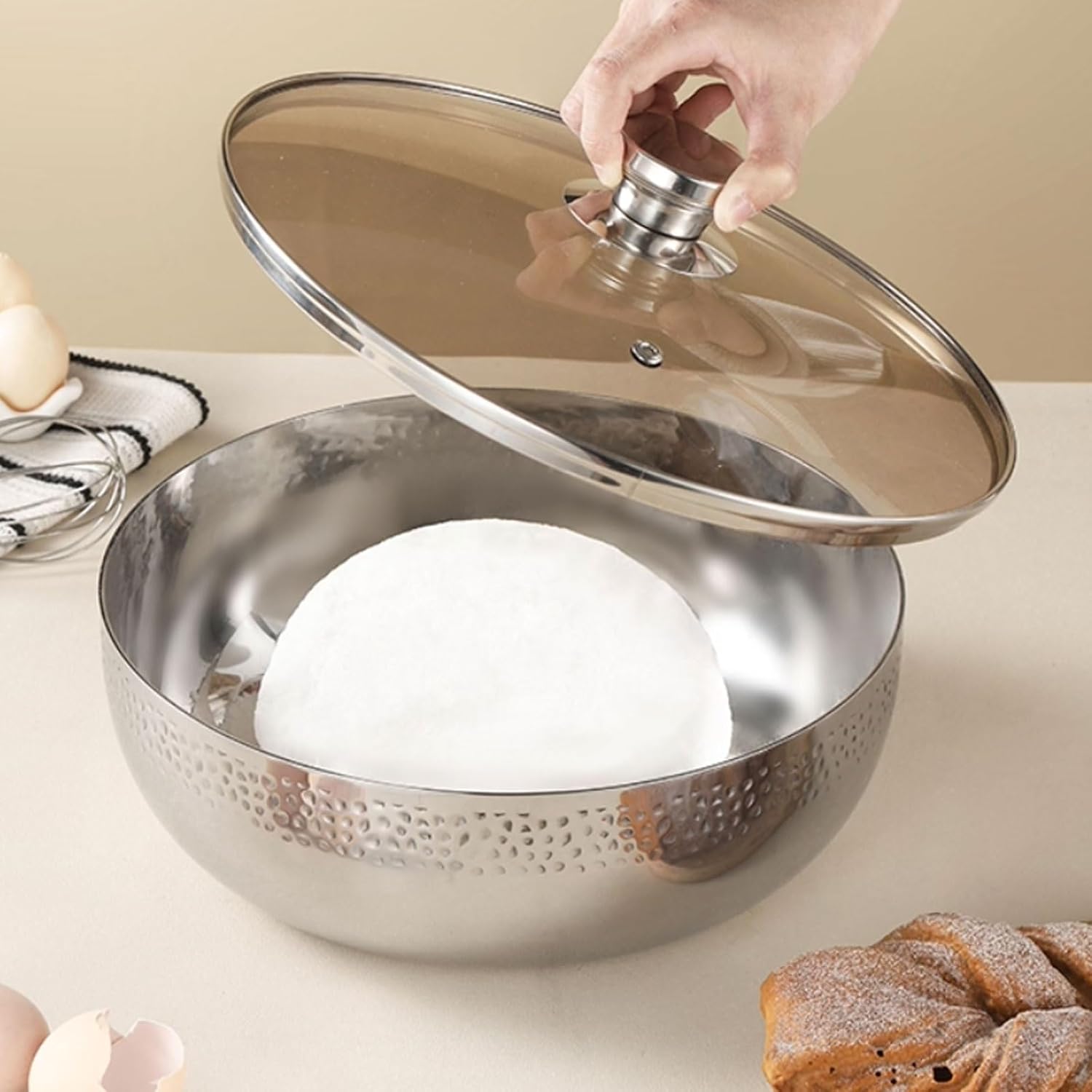 Convenient for storing and carrying food.Material: Stainless steelSize: 28.5cmx9cm/11.2x3.5in30.5cmx10cm/12.0x3.9in32.5cmx10.5cm/12.8x4.1inColor: silverScope of application: home, kitchen, restaurant, hotel, etc.Packing list: only includes Stainless steel mixing bowl with lid x1 (excluding other items shown in the picture)Kind tips1. Due to the difference in light and display, the color of the picture may be slightly different from the actual object, please refer to the actual object.2. The size is measured manually. If there is a slight error, please refer to the actual product received.3. Please wipe it clean immediately after use.4. For stainless steel products, please avoid scrubbing with hard objects such as steel wool.5. Stainless steel products may have slight wear and scratches on the surface, which will not affect the use.6. Before first use, clean it once, then rinse it with hot water, and wipe it dry inside and out before use.7. You can use an induction cooker to heat it, but do not use open flames to heat it, as it will make the bottom black.The nestable design saves space and makes it easy to store in shelves or cabinets.