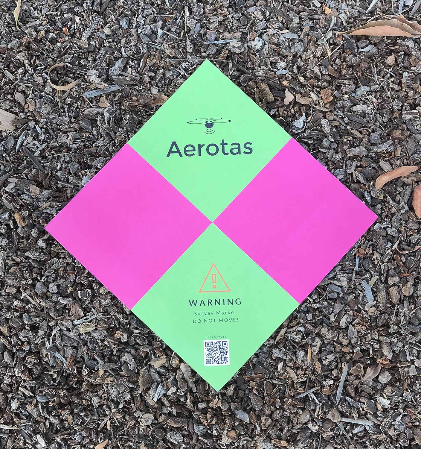 Aerotas Ground Control Points (GCPs) are the best and most cost-effective targets for your drone survey project. Aerotas GCPs get you high accuracy data without the time and effort associated with lugging around and picking up bulky and expensive tiles. HOW THEY'RE MADE Our Ground Control Points are made from 100% biodegradable paper products, designed specifically for this purpose. Because they are built to biodegrade, you don't have to waste time picking them up after a flight. They are also sturdy, built to withstand field conditions. A single nail is sufficient to anchor Aerotas GCPs to the ground, even in the wind. SIZE Aerotas GCPs are 16” x 16”. Smaller targets may work at low altitude, but can be very difficult at 400’. Larger targets are easy to see from high altitude, but are difficult to carry under one arm and cumbersome to store. Our GCPs, at 16” x 16” find the right balance of easy to carry and set, and easy to see in the field. They have 78% more surface area than common 12” squares and yet are small enough to carry hundreds in a typical field truck without modifications. TIME EFFICIENCY On large projects, it can take hours to walk an entire project and pick up ground control points at the end of a project. Because Aerotas makes our GCPs from 100% biodegradable paper products, they can be left behind after a project, saving hours in the field. Aerotas GCPs are designed to degrade in 6-12 months. VISIBILITY Traditional black and white targets were designed for black and white photography, and haven’t changed in decades. With color photography, high contrast color GCPs are more easily visible in every ground and lighting condition, while providing high contrast to easily identify the center point.
