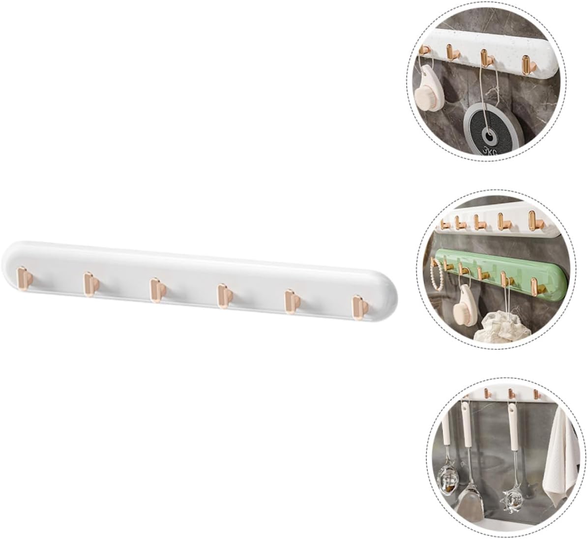 Package Include 1 x hook rack Features -Product Info:No hole punch hook -Material:ABS, sticker -Color:White -Size:40.20X5.20X3.10cm/15.80X2.04X1.22in - With a classic design, this hook is both beautiful and functional. And the hook has a wide application wall coat hooks. - Smooth surface offer comfortable hand feeling, and wall hook not scratch clothes or hat wall mounted hook. - Sturdy wall hook can hold items easily and safely, and you never worry about the falling risk clothes hooks. - A wall-mounted coat rack is perfect for small spaces. It doesn't take up any floor space sticky hangers for walls. - This coat hanger is perfect for when you need extra space, sturdy and expands to fit any space. self-adhesive hookGoods Informationself-adhesive hook Made of sturdy ABS, sticker material, suitable for you to storage your items in an organized way.hanging hooks Are you looking for a wall hook? Do you want your room to look tidy and clean? This wall hanger will be a wonderful choice for you