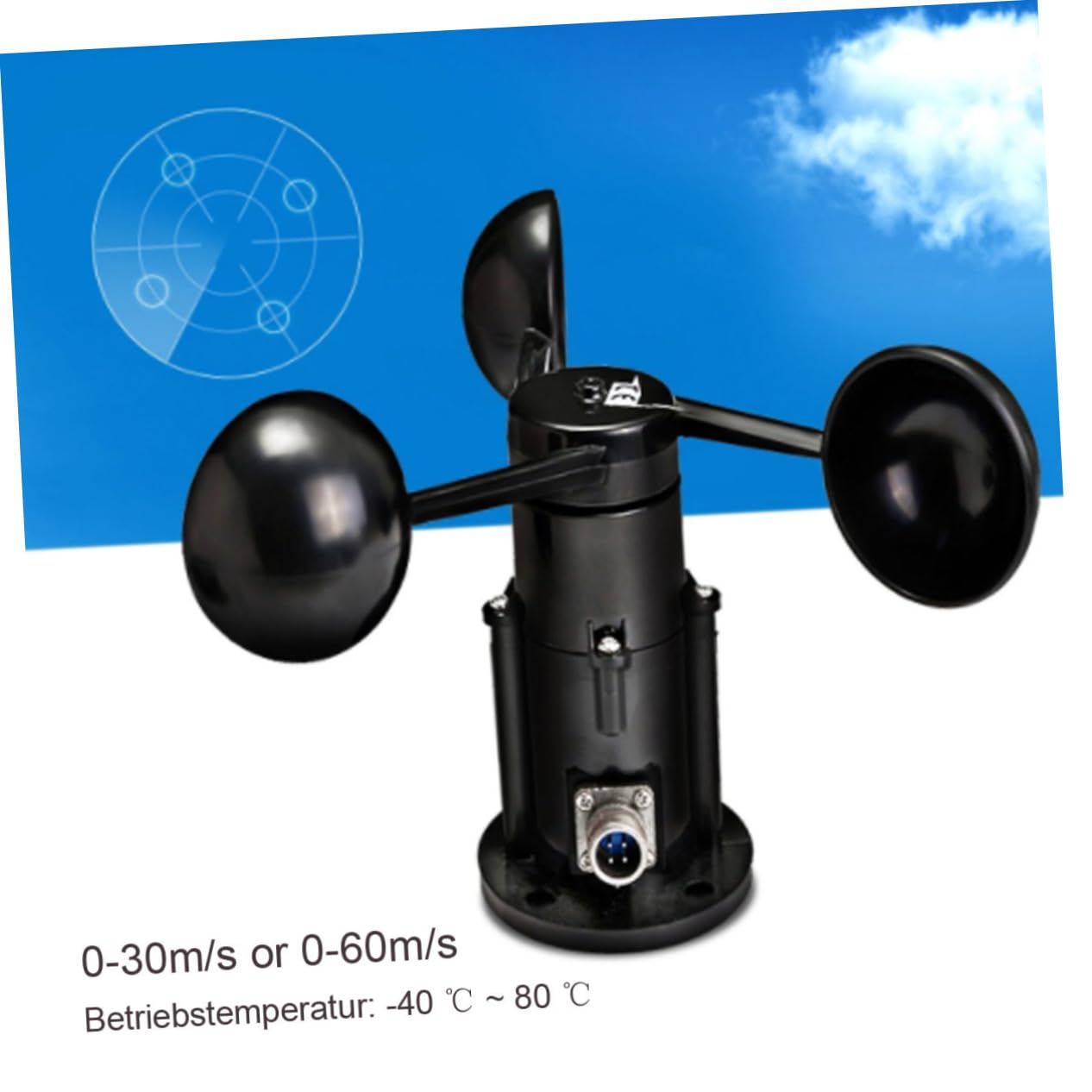 Package List 1 x Wind Sensor Characteristics - Starting : 0.2 /s wind meter - Material: ABS anemometer - Measuring range: 0~32. 4 /s wind sensor - Capacity: ≤200Ω wind gauge - Size: About 10 x 18 x 29.5cm. - Color: Black - : three cup - Power Supply: 7V~24V - Accuracy: ±1 /s - Output Signal: RS485- - High Accuracy - High sensitivity - Compact and easy to carryGoods Descriptionwind gauge Wind sensor structure using conventional three wind cups, wind Cup selection ABS Materials, high strength, good start; Sophisticated signal processing unit can output a variety of signals according to user needs.wind sensor This product has , good linearity, easy observation, stable and reliable, and can be widely used for meteorological, , environmental, airports, ports, laboratories, industry and agriculture, and transportation and other fields
